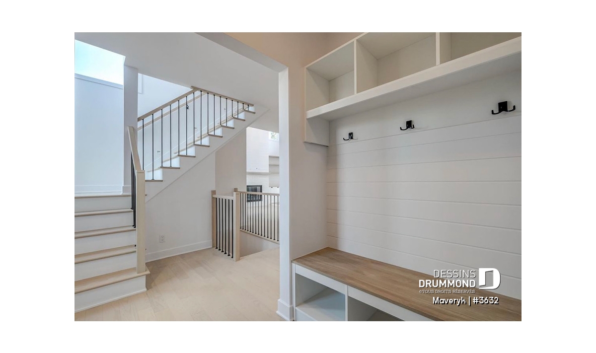 Entrée avant et accès direct du garage, avec vestiaire et jolie banquette intégrée.