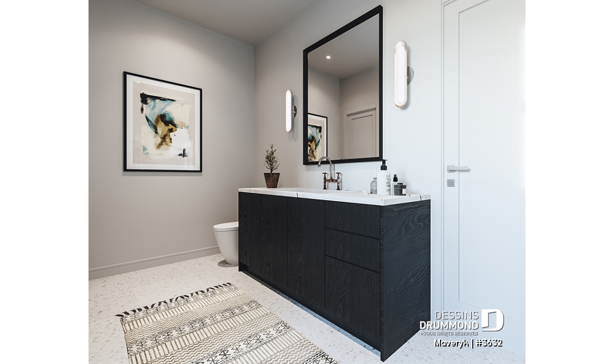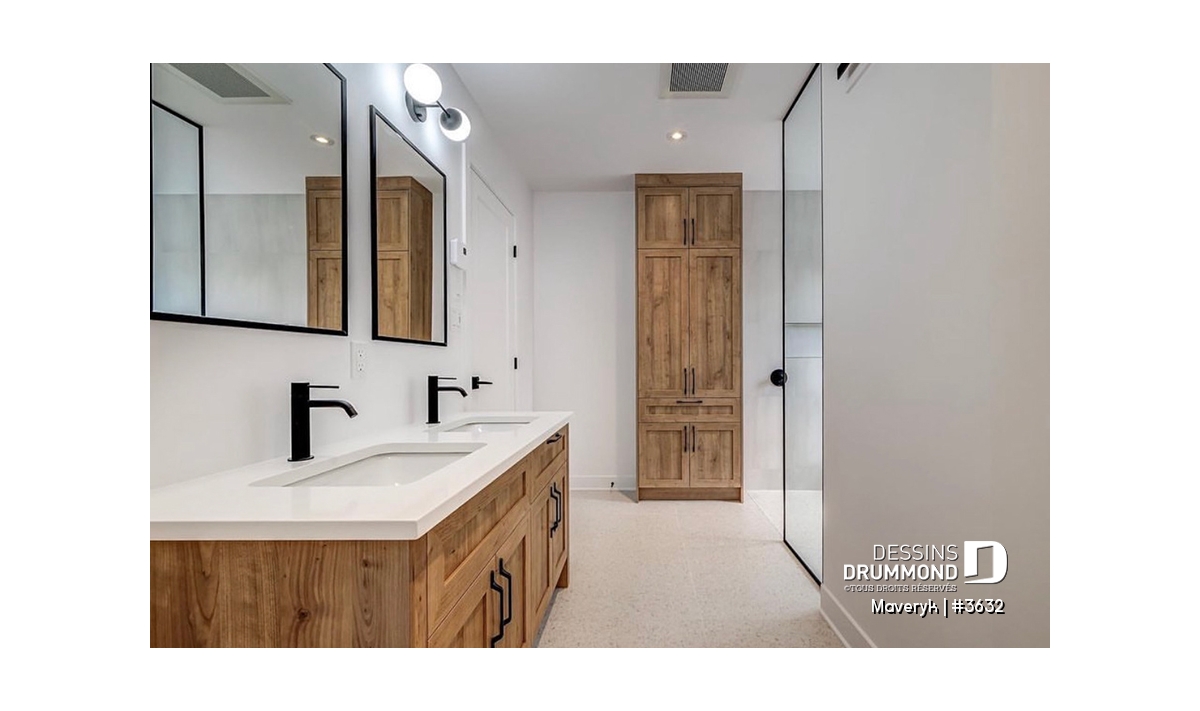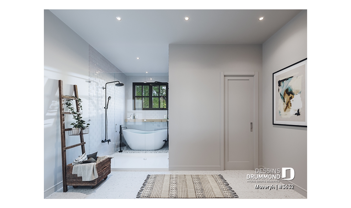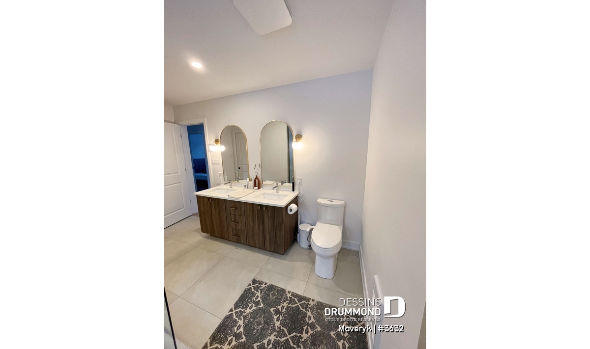La chambre principale propose un walk-in spacieux et un accès direct à la salle de bain familiale, qui se distingue par son bain-douche intégré et ses deux lavabos. La chambre #3 profite elle aussi d’un walk-in.