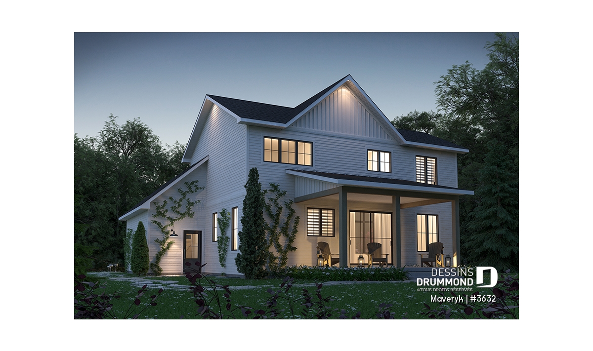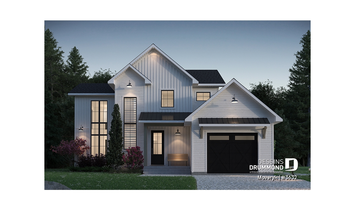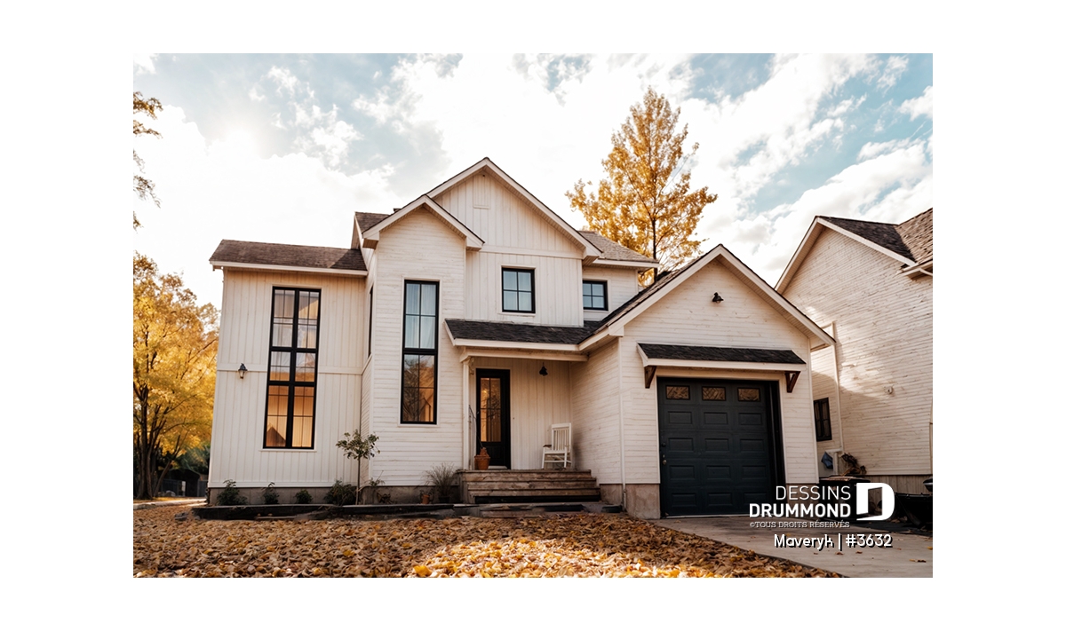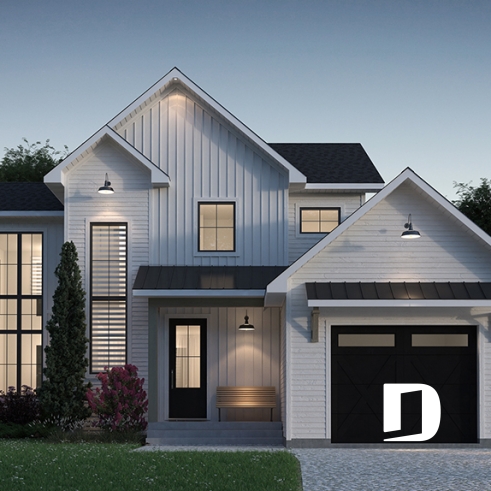 Cette maison de style Farmhouse moderne séduit par son charme intemporel et sa conception pensée pour la vie de famille d’aujourd’hui. Dès le premier regard, sa silhouette élégante, son garage attenant et son perron avant abrité dégagent une impression de confort et de convivialité.