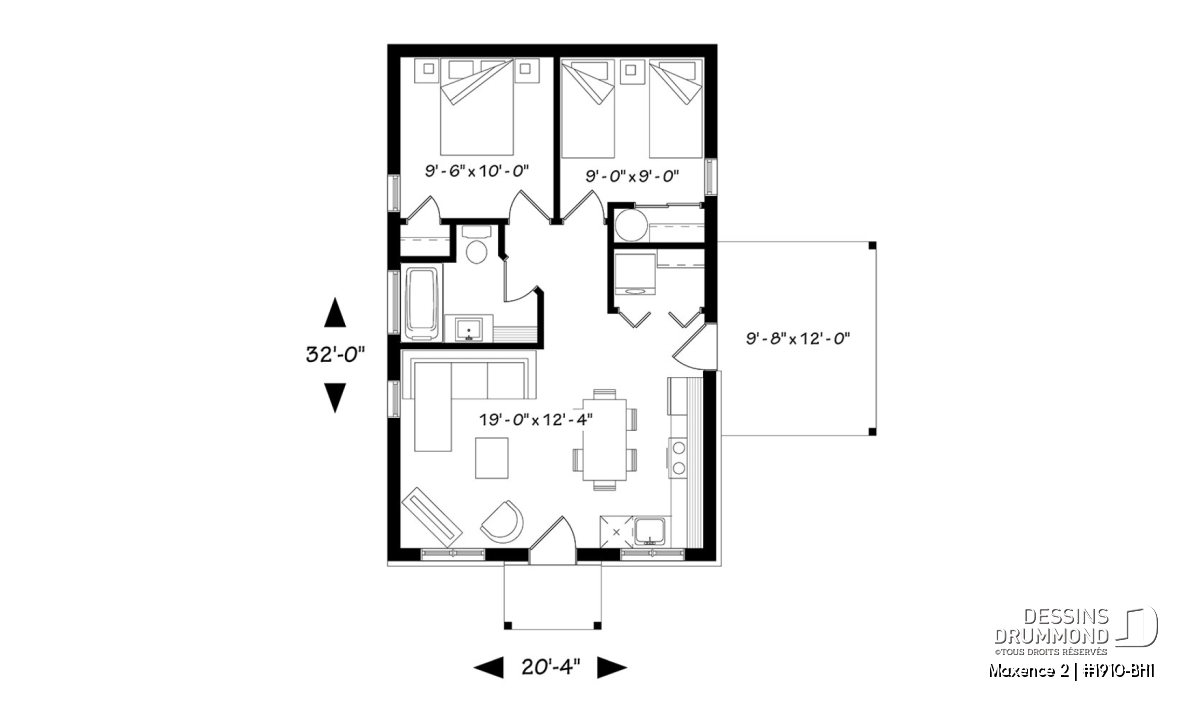 | Largeur | 20'4" | Profondeur | 32'0" |