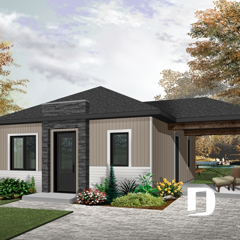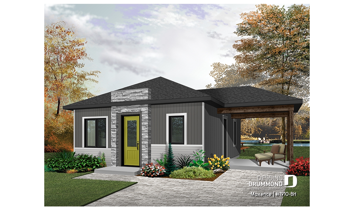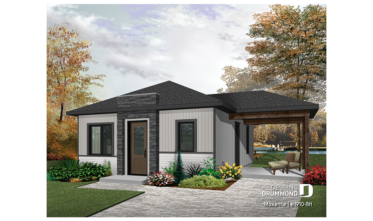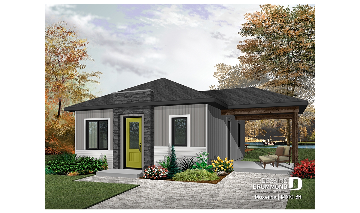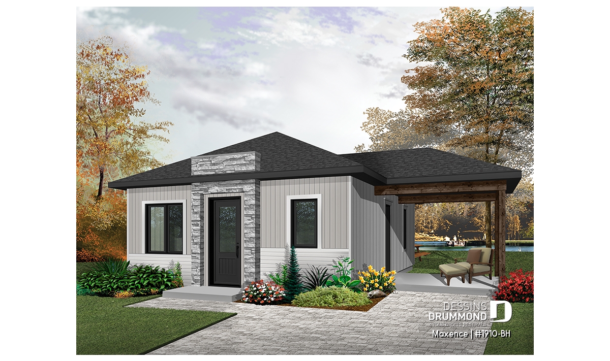 Découvrir nos servicesAvec son 640 pi.ca. si bien conçu, la popularité de cette petite maison contemporaine vient de son coût de construction qui saura en charmer plus d'un, de ses deux chambres à coucher pouvant loger aisément deux lits queen et d'un secteur d'activités bien fenêtré à plan de plancher ouvert. Aussi, un patio latéral couvert se veut être l'extension des aires familiales, la belle saison venue.