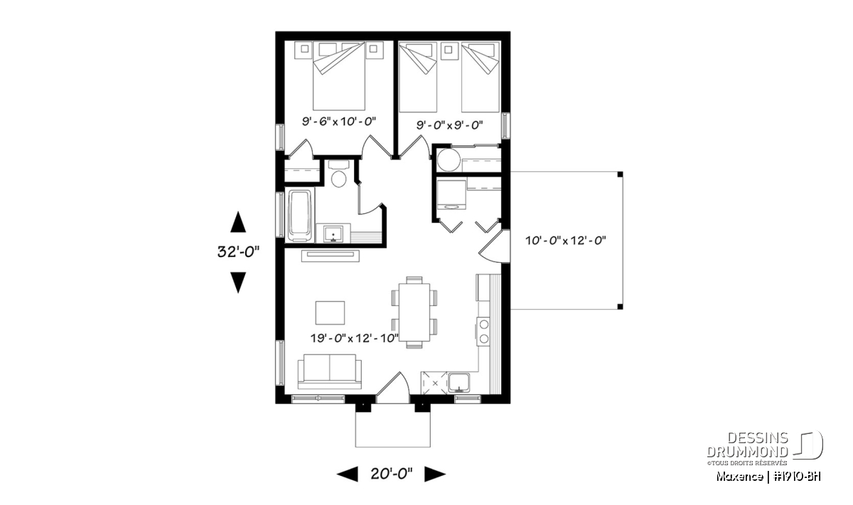 | Largeur | 20'0" | Profondeur | 32'0" |