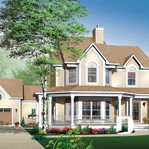 Plan maison 3 chambres, grande suite des maîtres, buanderie à l'étage, foyer, garde manger et îlot
