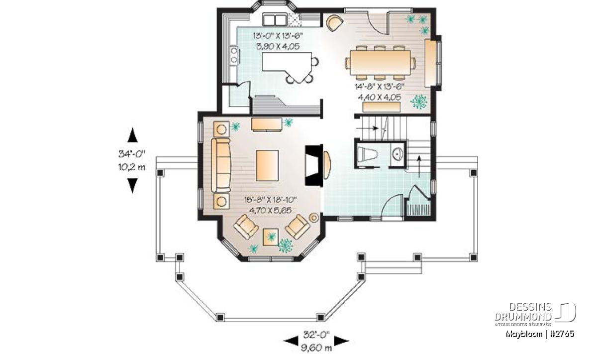 | Largeur | 32'0" | Profondeur | 34'0" |
