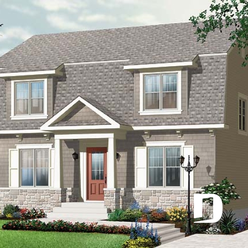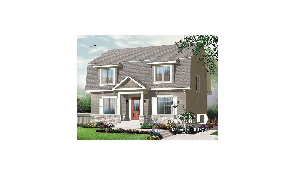 Aménagement du rez-de-chaussée à la fois ouvert, tout en lumière et proposant de beaux espaces dont ce coin ordinateur attenant à la salle à manger. Cuisine avec excellent rangement, comptoir-lunch et large fenêtre à l'évier. Rangement intégré à la salle de séjour et idéal pour y loger une télé à écran plat. Espace buanderie prévu au rez-de-chaussée. Quatre belles chambres à l'étage dont une suite des maîtres avec garde-robe "walk-in" et salle de bain privée. Organisation intérieure, surtout le puits d'escalier, facilitant l'addition d'un garage avec espace boni au-dessus.