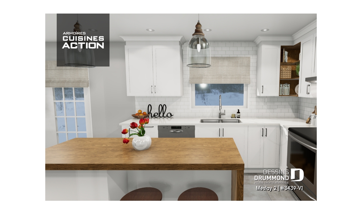 Pour ceux qui cherchent un superbe cottage budgétaire proposant à la fois un bel extérieur et un intérieur qui optimize l'éspace plancher en reduisant légèrement la grandeur de la salle à manger pour augmenter l'éspace de rangement dans la cuisine.