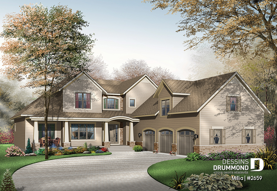 Les estimations de maison incluent les revêtements tels qu'illustrés sur notre site. Les maisons modestes sont calculées avec un revêtement de clin régulier en vinyle. Pour les maisons régulières et plus complexes, nous ajoutons des montants approximatifs (au pi.ca.) : clin de fibrociment, de cèdre, maçonnerie légère ou régulière (partiel ou total), board & batten, bois, et autres. Les poutres de bois illustrées sur l'extérieure de nos maisons sont aussi incluses dans le coût, mais elles sont «capées » et non en bois massif. Il en est de même pour les portes d'entrée et portes de garage. Elles sont incluses aux estimations, mais de qualité standard. Concernant les revêtements de maçonnerie : on propose, sur plusieurs modèles, une touche de brique-pierre comme on en retrouve chez la plupart des fabricants de brique (faire attention de ne pas confondre avec de la pierre naturelle, rarement sur nos illustrations et beaucoup plus dispendieuse). NOTE : Si vous souhaitez utiliser un revêtement de maçonnerie plutôt qu'un clin comme illustré sur le plan que vous avez choisi, svp nous contacter car vous aurez besoin de faire modifier le plan en conséquence.