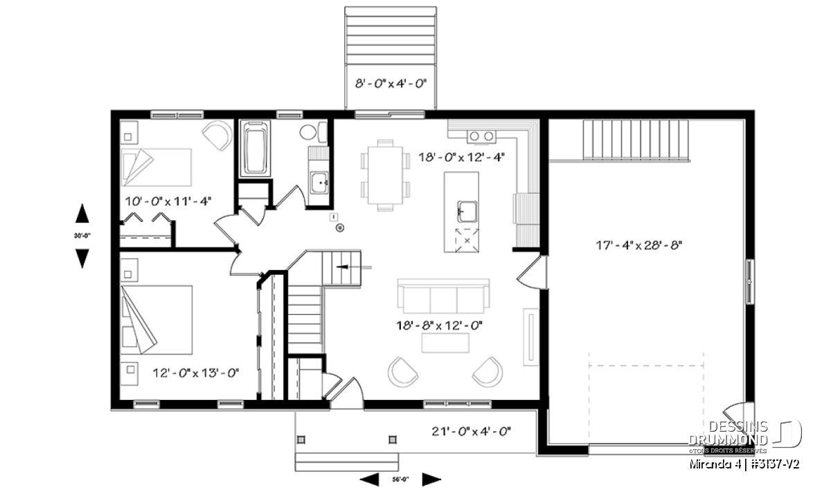 | Largeur | 56'0" | Profondeur | 30'0" |