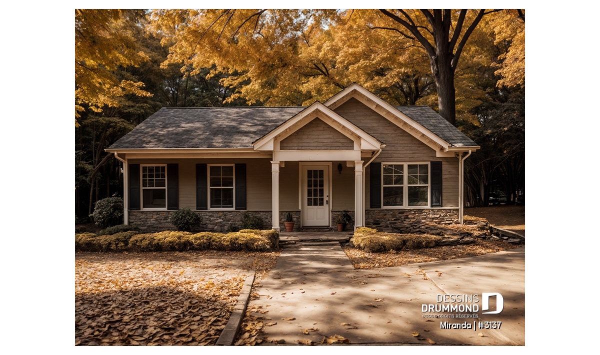 Le plan de maison Miranda (#3137) séduit par son équilibre parfait entre design farmhouse, fonctionnalité et prix accessible. Conçu sous la forme d’un plain-pied lumineux, ce modèle représente une solution idéale pour les jeunes familles à la recherche d’une première maison chaleureuse, bien pensée et évolutive.