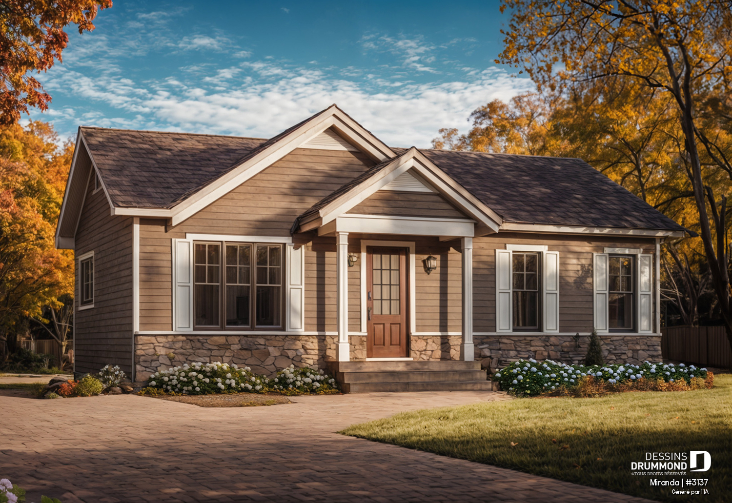 Les estimations de maison incluent les revêtements tels qu'illustrés sur notre site. Les maisons modestes sont calculées avec un revêtement de clin régulier en vinyle. Pour les maisons régulières et plus complexes, nous ajoutons des montants approximatifs (au pi.ca.) : clin de fibrociment, de cèdre, maçonnerie légère ou régulière (partiel ou total), board & batten, bois, et autres. Les poutres de bois illustrées sur l'extérieure de nos maisons sont aussi incluses dans le coût, mais elles sont «capées » et non en bois massif. Il en est de même pour les portes d'entrée et portes de garage. Elles sont incluses aux estimations, mais de qualité standard. Concernant les revêtements de maçonnerie : on propose, sur plusieurs modèles, une touche de brique-pierre comme on en retrouve chez la plupart des fabricants de brique (faire attention de ne pas confondre avec de la pierre naturelle, rarement sur nos illustrations et beaucoup plus dispendieuse). NOTE : Si vous souhaitez utiliser un revêtement de maçonnerie plutôt qu'un clin comme illustré sur le plan que vous avez choisi, svp nous contacter car vous aurez besoin de faire modifier le plan en conséquence.