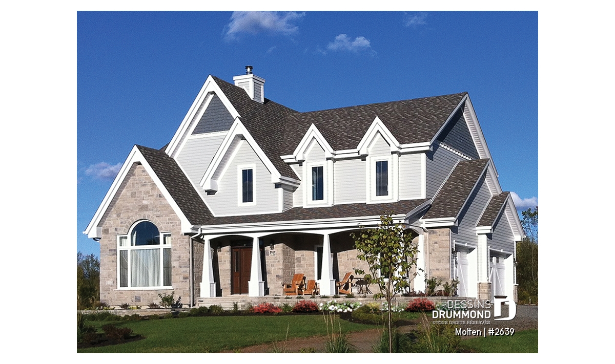 Inspiré de notre très apprécié modèle 3828, ce cottage d’esprit européen revisité à l’américaine marie élégance, confort et fonctionnalité moderne. Dès l’extérieur, son architecture raffinée se distingue par un garage double latéral harmonieusement intégré à la façade, offrant à la fois discrétion et praticité. Ce choix structurel permet d’ailleurs de créer une suite des maîtres exceptionnelle à l’étage, un privilège rare dans ce type de cottage.