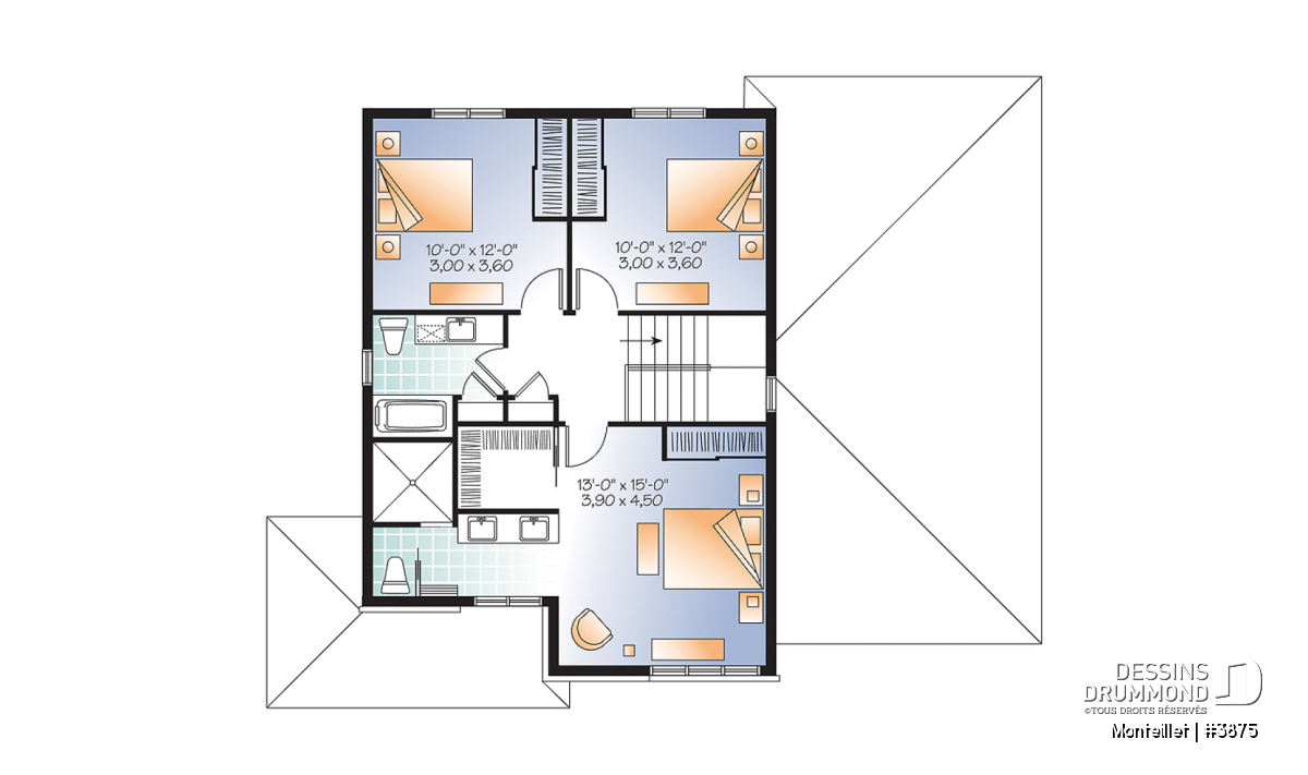 À l’étage, l’effet grandeur se poursuit avec deux belles chambres secondaires logeant chacune un lit double ainsi qu’une garde-robe de 6’ tout en se partageant une salle de bain. De son côté, les maîtres bénéficient d’une suite avec garde-robe monsieur et garde-robe madame ainsi que d’une salle de douche avec vanité double, toilette en cabine et douche de 5’x5’. De quoi rêver non ?