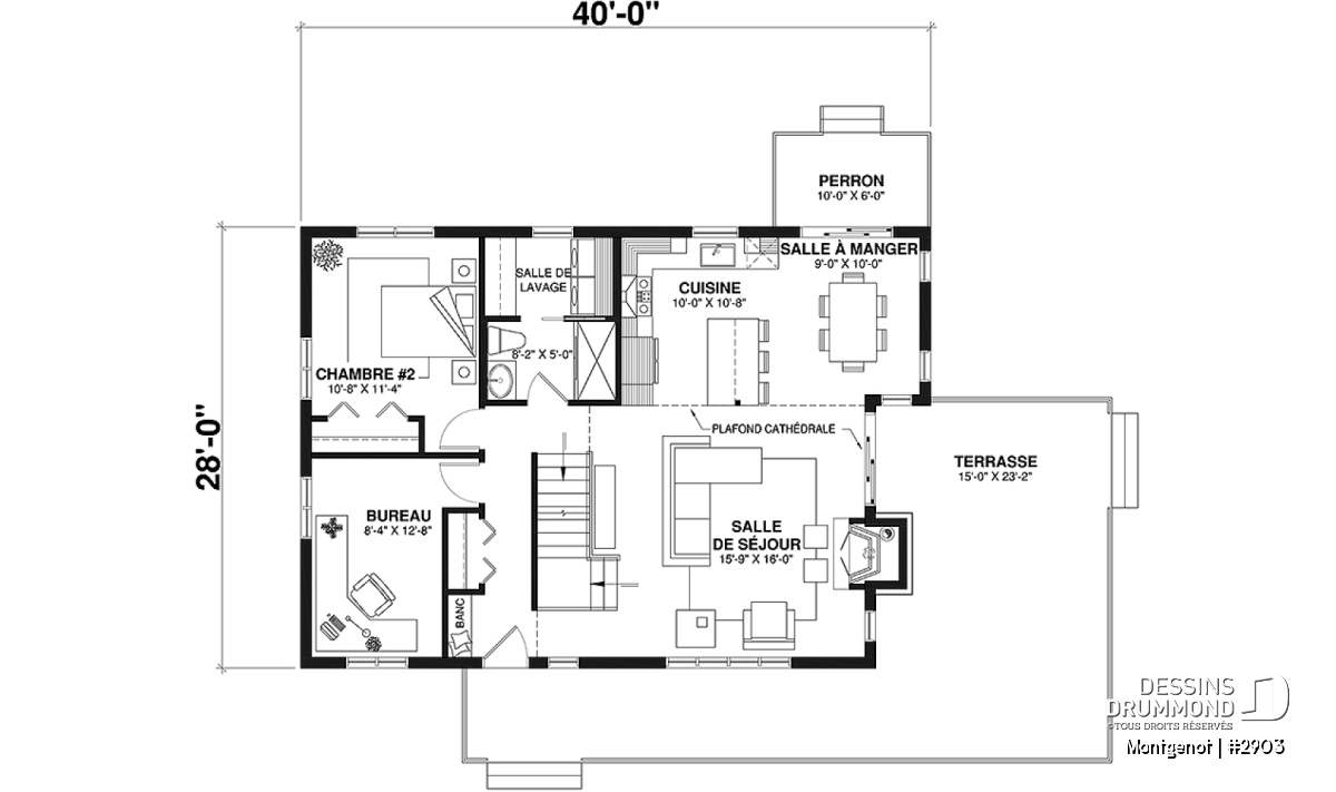 Largeur 40'0" Profondeur 28'0"