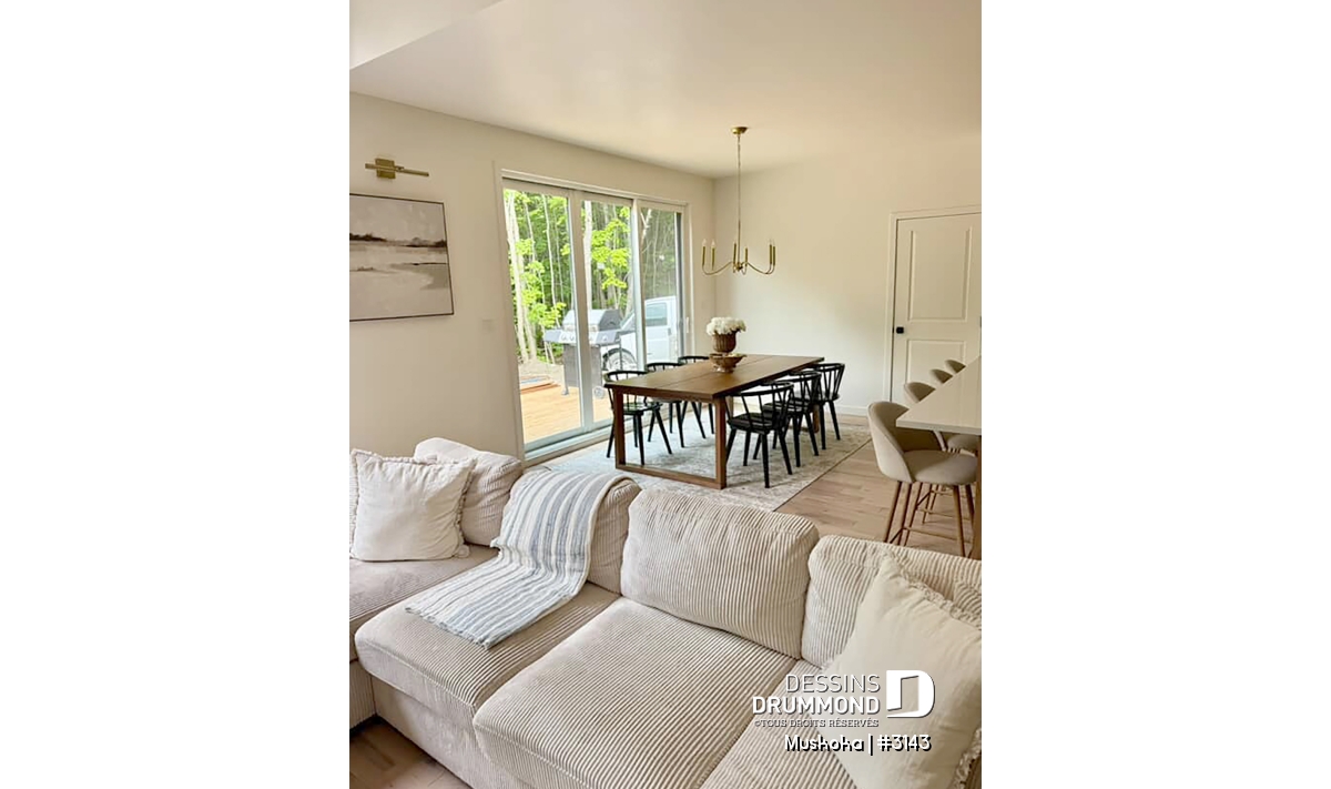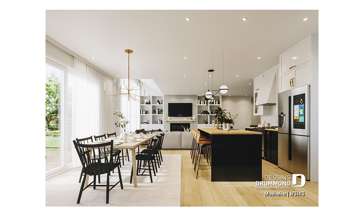 La cuisine conviviale séduira les amateurs de gastronomie et de moments partagés. Avec son grand îlot central, idéal pour cuisiner ou discuter en famille, et son garde-manger bien pensé, elle devient le véritable cœur de la maison. La salle à manger attenante se prête autant aux soupers intimes qu’aux réceptions festives.