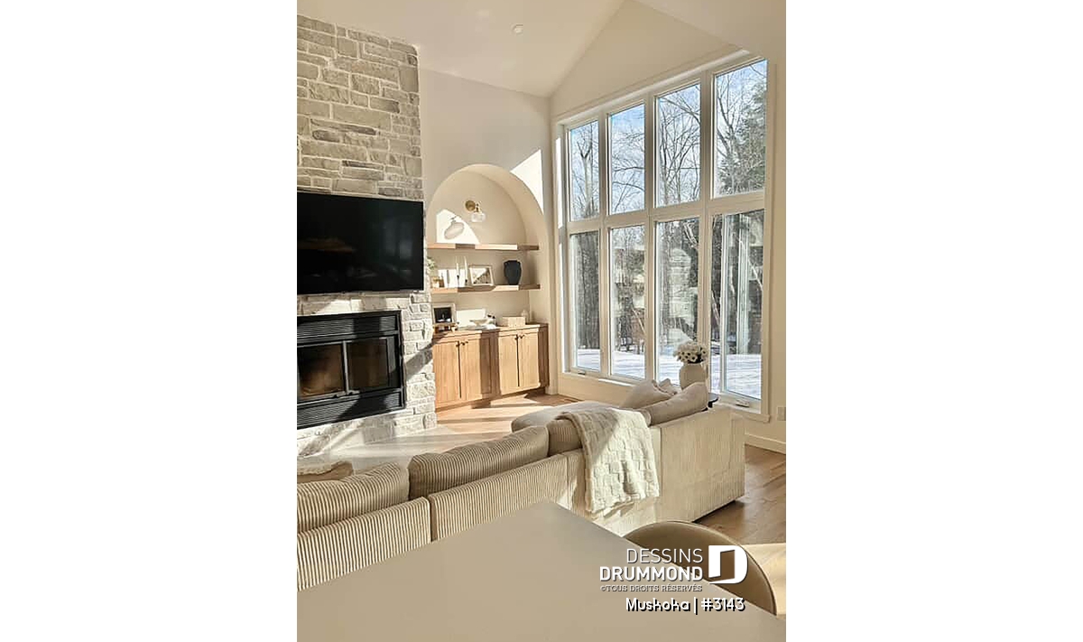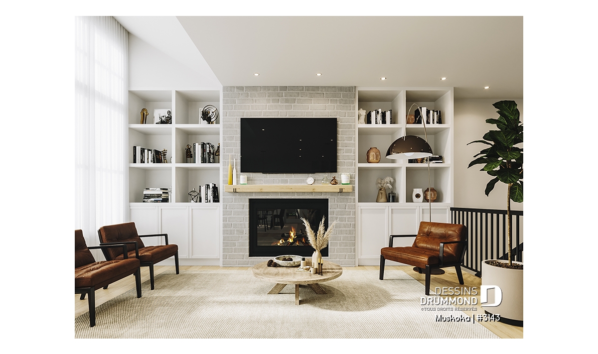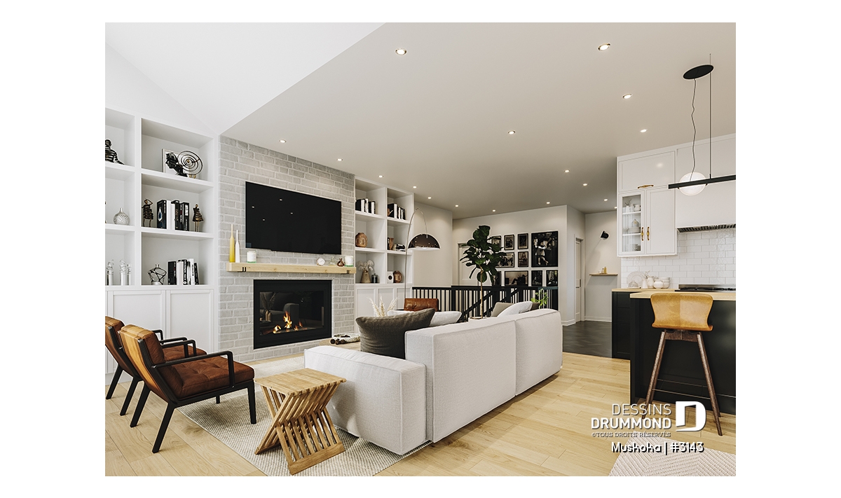 Le salon complète l’espace de vie avec son foyer, ajoutant une touche de chaleur et de confort, parfaite pour les soirées d’hiver. La suite des parents, située au rez-de-chaussée, est un véritable cocon : elle propose un grand walk-in et une salle de bain semi-privée, en plus d’un accès pratique à une salle d’eau en retrait.