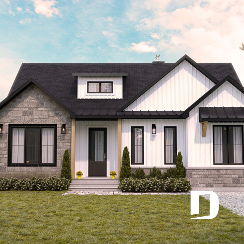 Découvrez ce magnifique plan de maison Farmhouse, pensé pour allier confort, élégance et fonctionnalité. Avec la possibilité d’offrir de 1 à 4 chambres selon l’aménagement du *sous-sol optionnel, cette demeure s’adapte parfaitement aux besoins d’une jeune famille, d’un couple actif ou de ceux qui souhaitent accueillir confortablement enfants et invités.