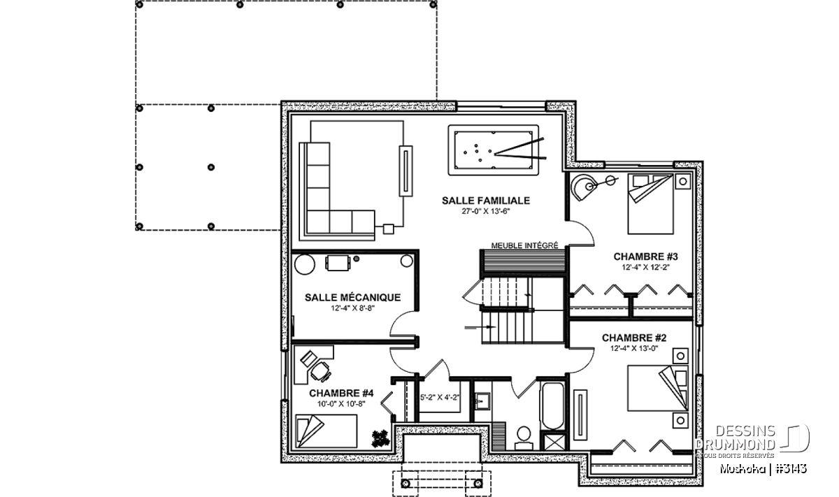 *Si vous souhaitez acheter le plan du sous-sol aménagé, tel que présenté sur la page de ce plan, veuillez sélectionner cette option dans le panier d'achat, dans la section "Sélectionner votre fondation". Si vous ne sélectionnez pas cette option, vous recevrez le sous-sol non fini, sans frais additionnel.