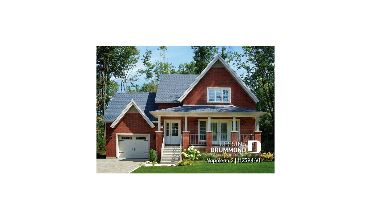 Conçu à partir du plan d’origine 2594, ce modèle de maison change radicalement de poil avec une sortie de sol significative, un traitement extérieur davantage urbain et l’addition d’un garage comme tant convoité par bien des propriétaires.