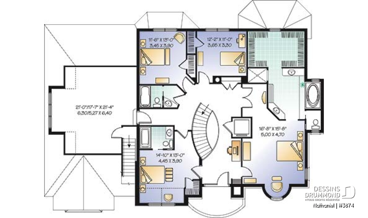 Quatre belles chambres à l'étage et trois salles de bain.
