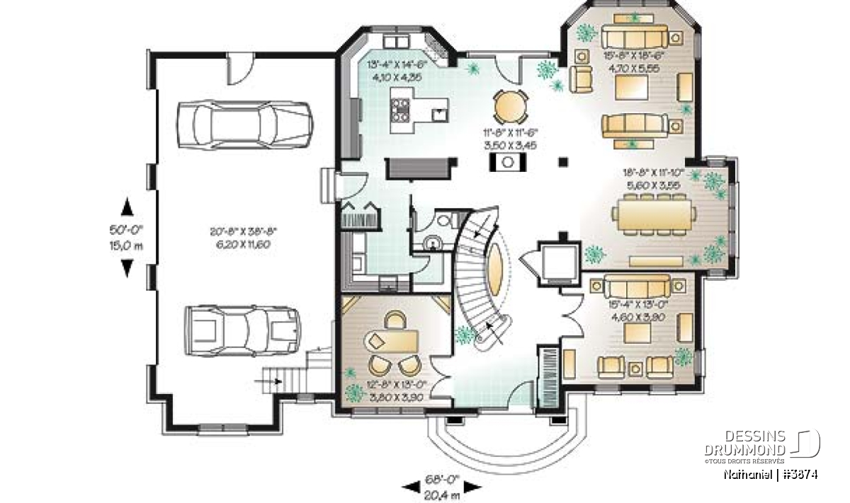 Garage triple avec espace boni aménageable au-dessus du garage.