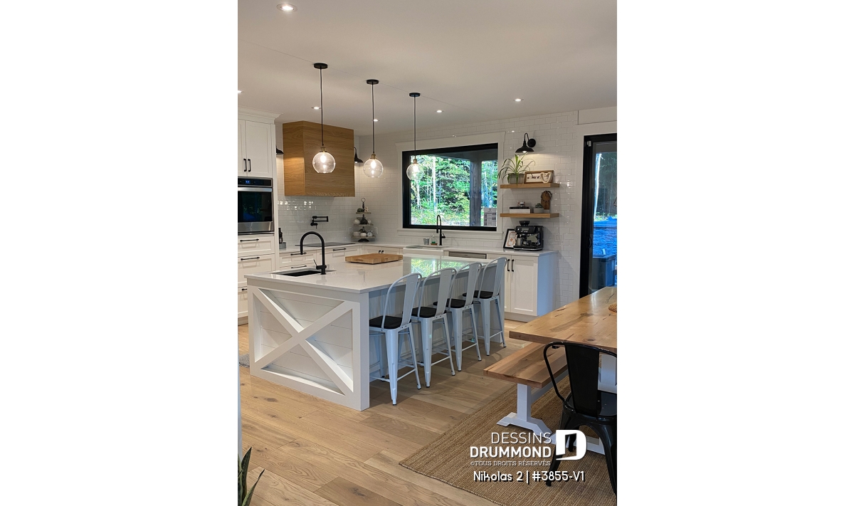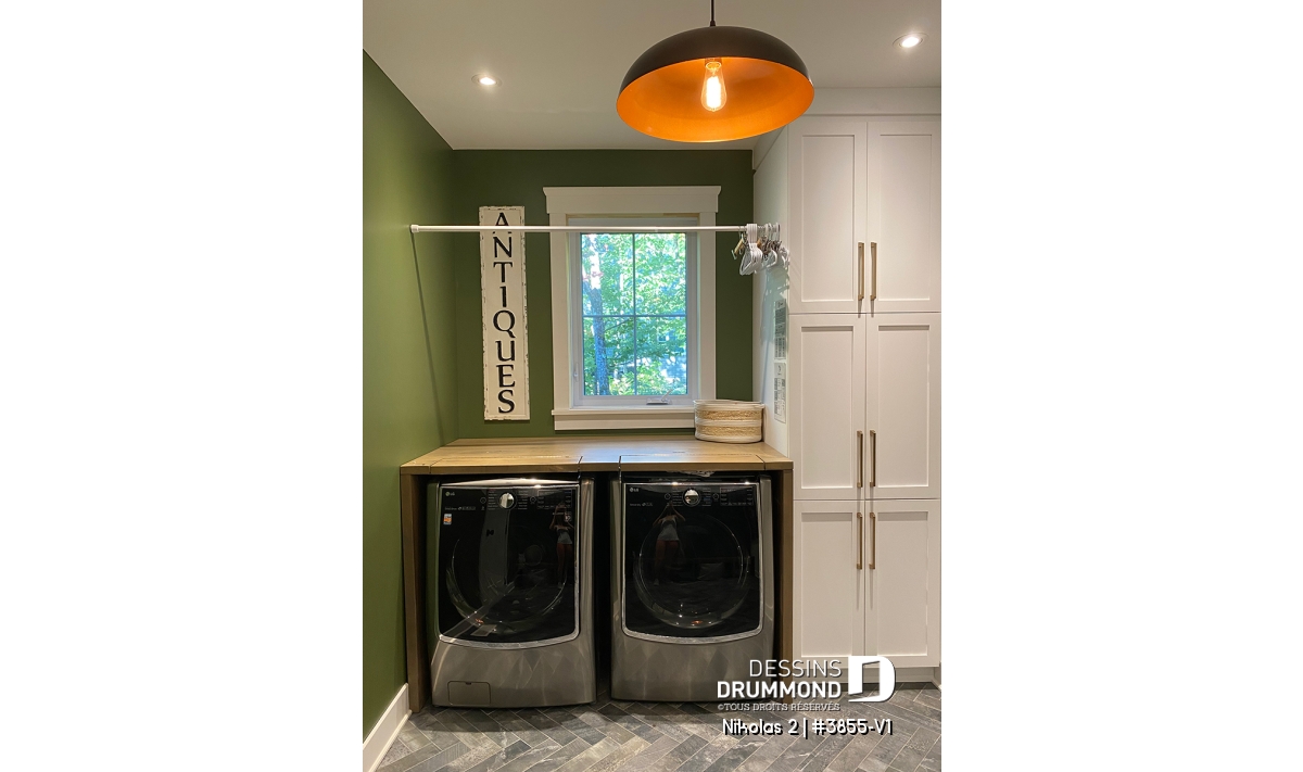 Plafond à 9 pi sur tout le rez-de-chaussée et ouvert sur deux étages à l'entrée principale. Espace bureau prévu au rez-de-chaussée. Foyer et mobilier intégrés aménagés à la salle de séjour. Cuisine avec îlot-lunch central et beaucoup de rangement dont un garde-manger en coin. Buanderie avec cuve, comptoir et espace pour un congélateur. Suite des maîtres remarquable à l'étage avec walk-in, vanité double, toilette en cabine et douche de grand format. Salle de jeux ou 4è chambre toujours à l'étage. Garage double avec espace pour voiturette de golf et rangement boni dans la toiture au-dessus.