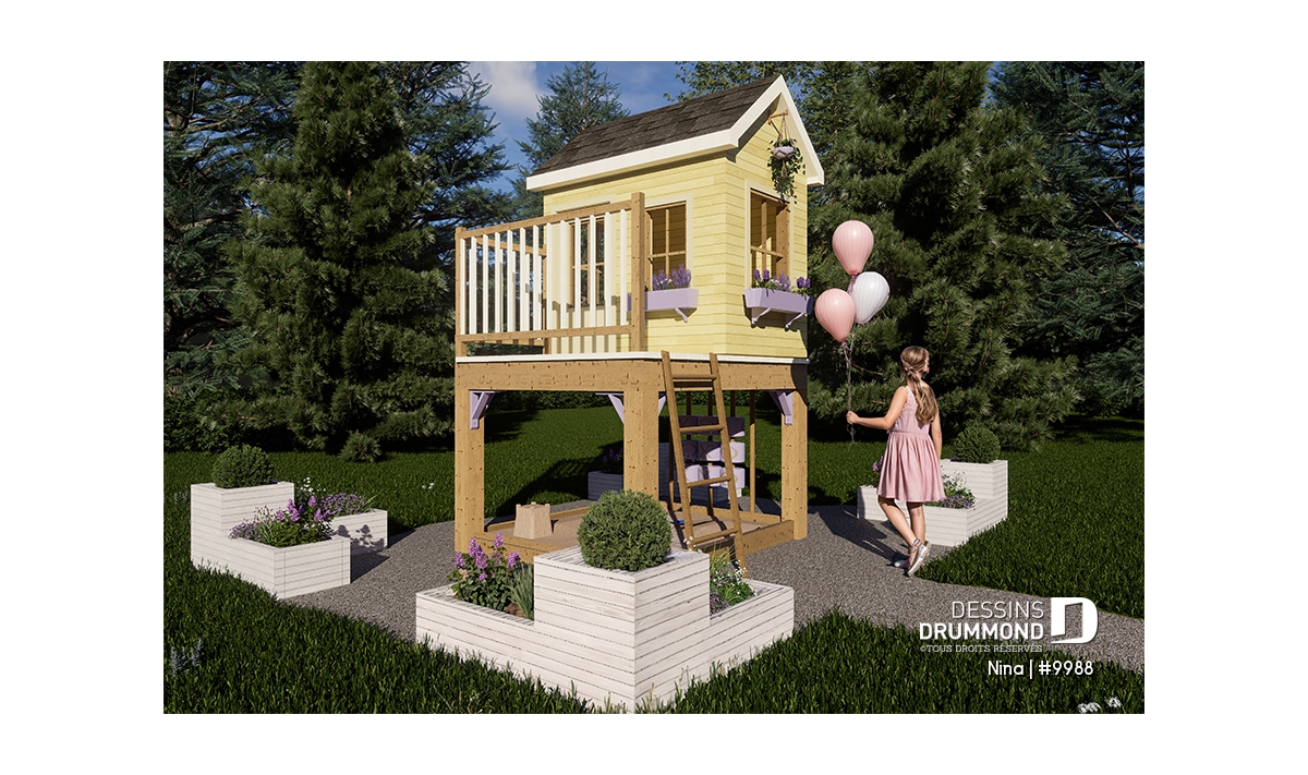 Et pour plus de flexibilité, cette maisonnette peut également être construite directement au sol, pour une version plus classique qui s’adapte à tous les types de terrain. Quelle que soit l’option choisie, elle s’intégrera parfaitement dans votre cour ou votre jardin, en y ajoutant du charme, de la couleur et surtout, beaucoup de bonheur.