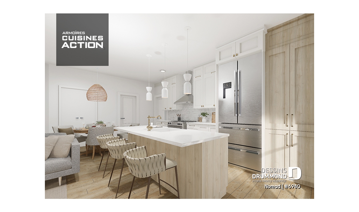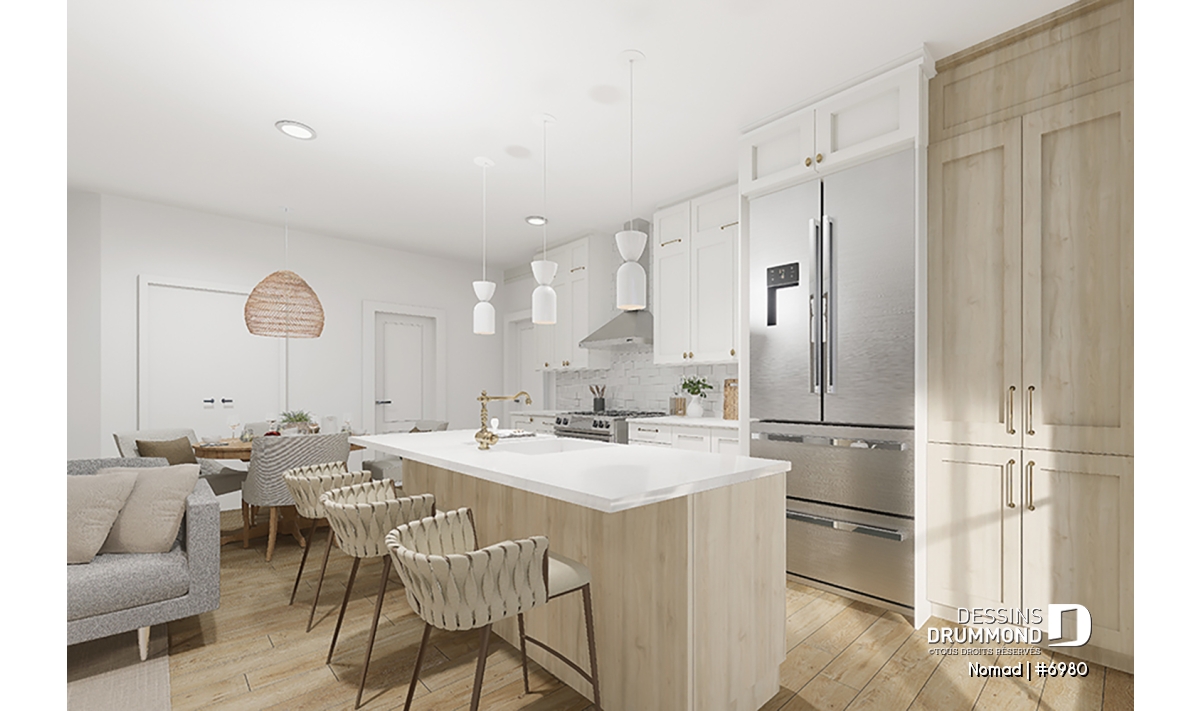Le plan de maison Nomad (# 6980) est le premier d'une série de 6 modèles de la collection HYBRIDE. Ce projet a été développé pour un entrepreneur désirant offrir un concept de maison évolutive à une clientèle de gens possédant un véhicule récréatif (VR), tel un motorisé, une fifth wheel ou une roulotte. Cette collection offre une alternative de logement aux voyageurs, retraités et/ou aventureux, souhaitant avoir un pied à terre auprès de la famille et des amis ainsi qu’un espace garage permettant le rangement et l’accès à leur VR directement de leur maison.