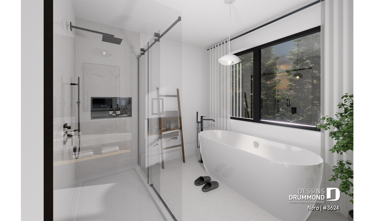 Aire ouverte, Foyer, Garde-manger, Ilôt, Plafond cathédrale, Salle de lavage au rez-de-chaussée, Terrasse abritée, Vestiaire, Vue paronamique, Bureau / Salle étude, Plafond à plus de 8', Walk-in ch. maîtres, Plafond en pente, Bain et douche séparés, Auto-Construction