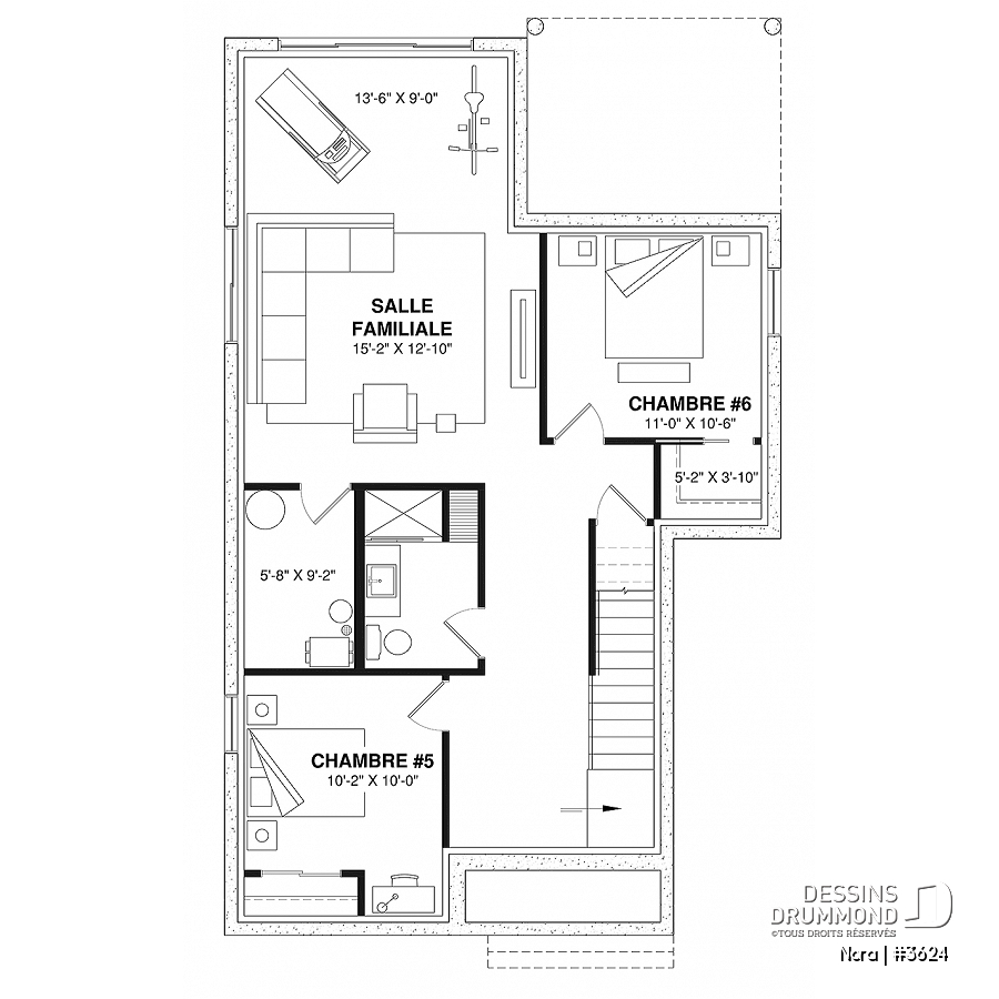 *Si vous souhaitez acheter le plan du sous-sol aménagé, tel que présenté sur la page de ce plan, veuillez sélectionner cette option dans le panier d'achat, dans la section "Sélectionner votre fondation". Si vous ne sélectionnez pas cette option, vous recevrez le sous-sol non fini, sans frais additionnel.
