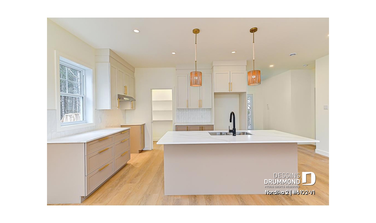 Garde-manger, Salle de lavage au rez-de-chaussée, Vue paronamique, Plafond à plus de 8', Ilôt, Terrain étroit, Aire ouverte, Bain et douche séparés, Lavabo double, Entrepreneur, Auto-Construction