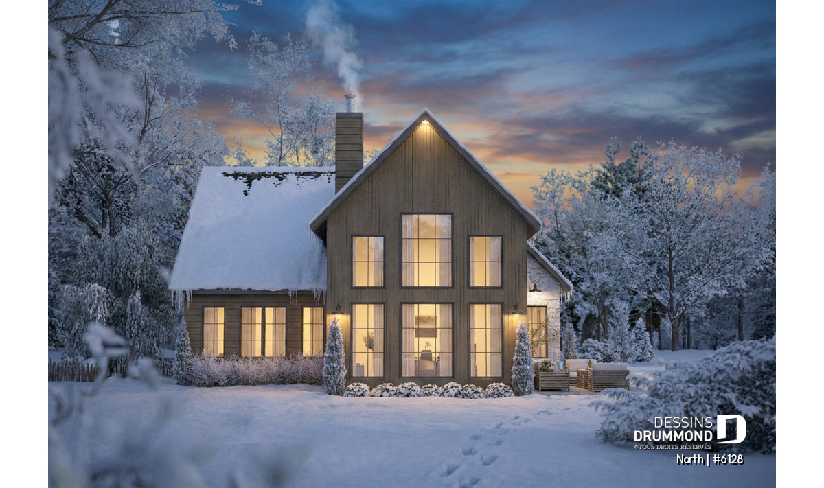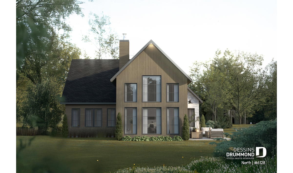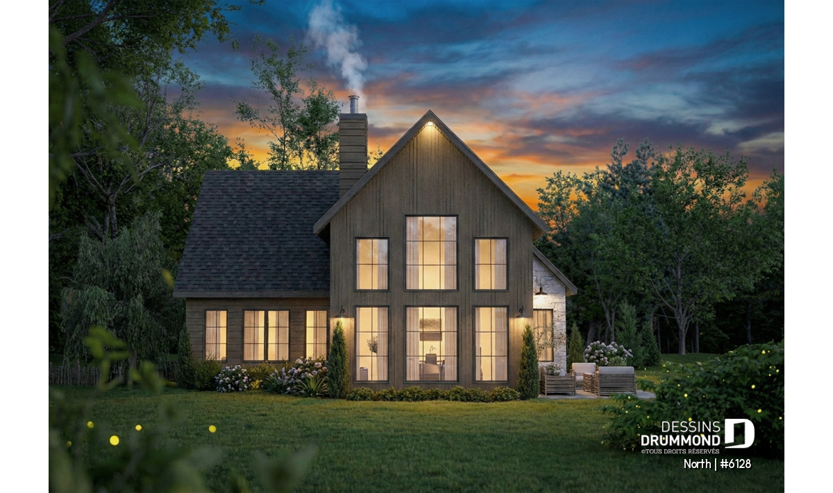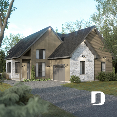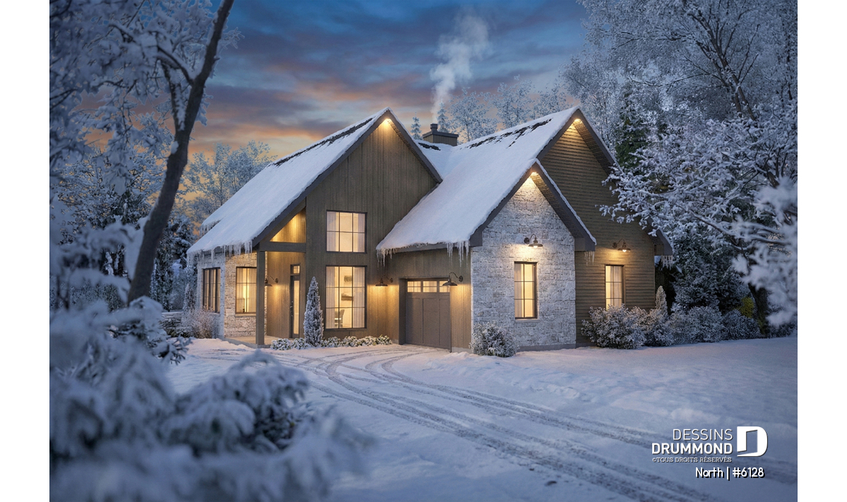 Le modèle North (#6128) est un plan de maison à étage avec garage qui séduit dès le premier regard par son style champêtre revisité et ses matériaux chaleureux et intemporels. Conçu pour offrir un cadre de vie lumineux et apaisant, il propose 1156 pi.ca. au rez-de-chaussée et 666 pi.ca. à l’étage, pour une superficie bien pensée qui maximise chaque espace. Ce plan est particulièrement adapté aux terrains offrant une vue sur l’eau ou en pleine nature, où la lumière naturelle et le paysage deviennent partie intégrante du quotidien. Le garage intégré ajoute à la fois fonctionnalité et confort, en facilitant l’accès à la maison en toute saison.