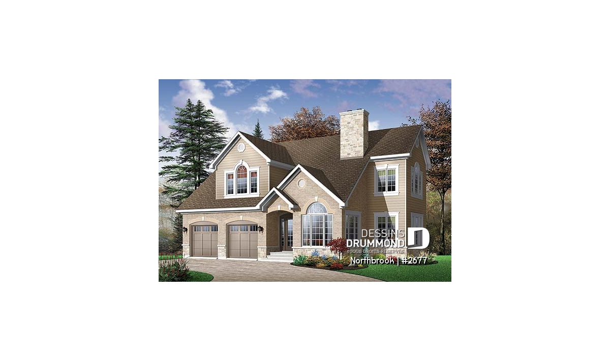 Vue avant - MODÈLE DE BASE - Plan de maison à 2 étages, garage double, 4 chambres, bureau à domicile, suite des maîtres - Northbrook