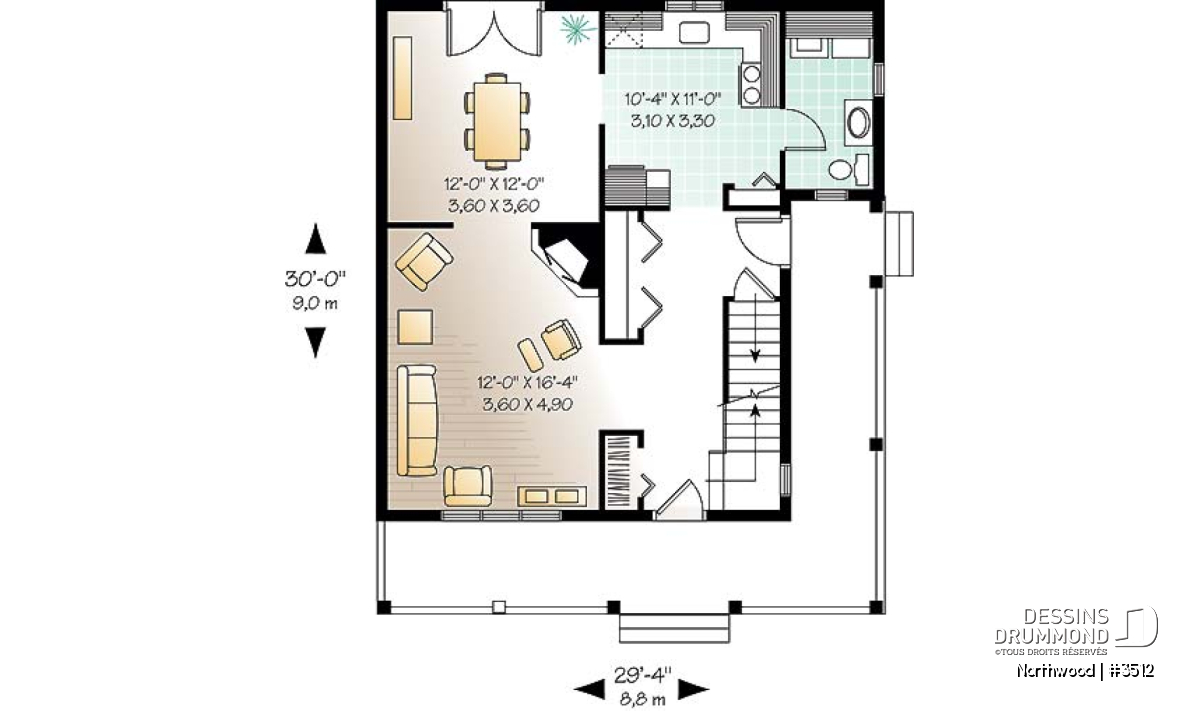 | Largeur | 29'4" | Profondeur | 30'0" |