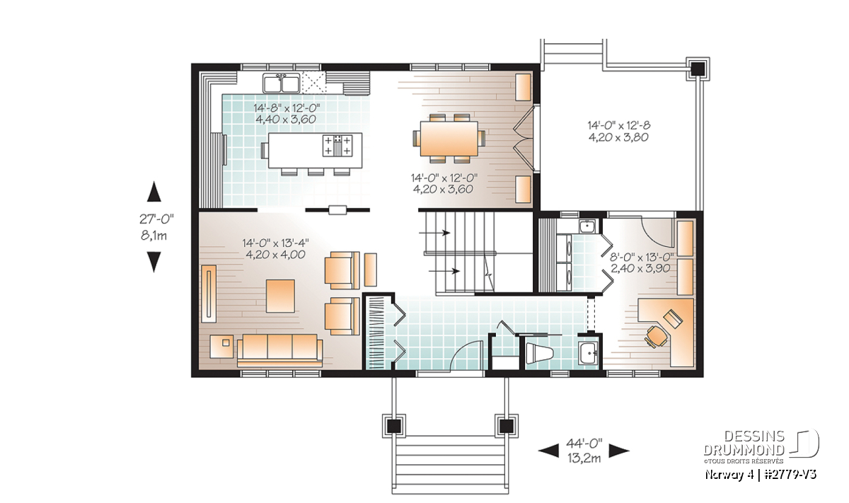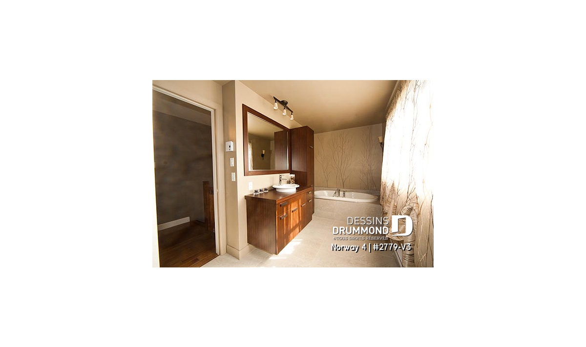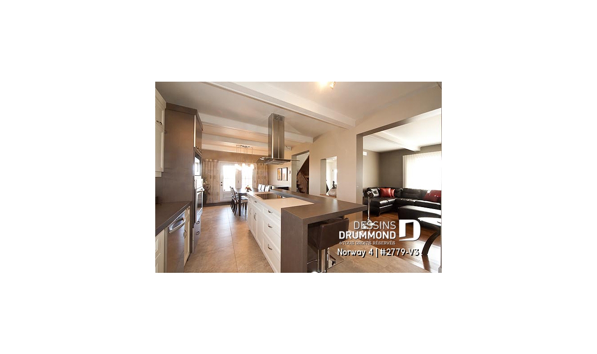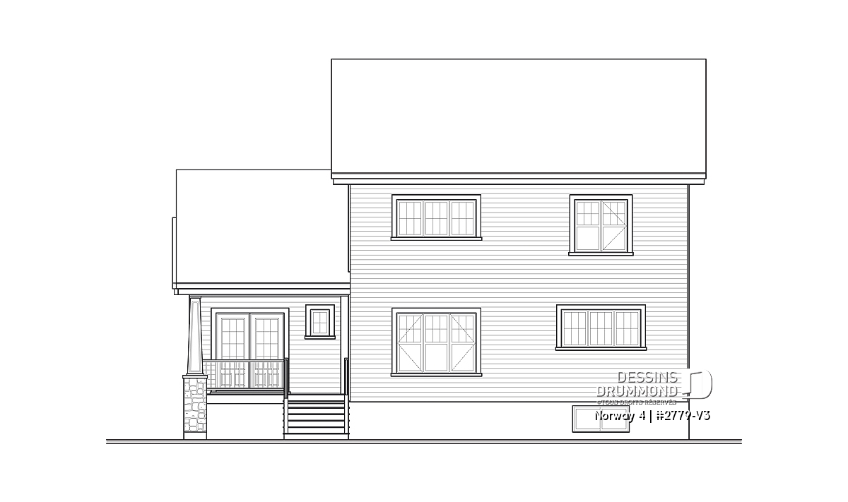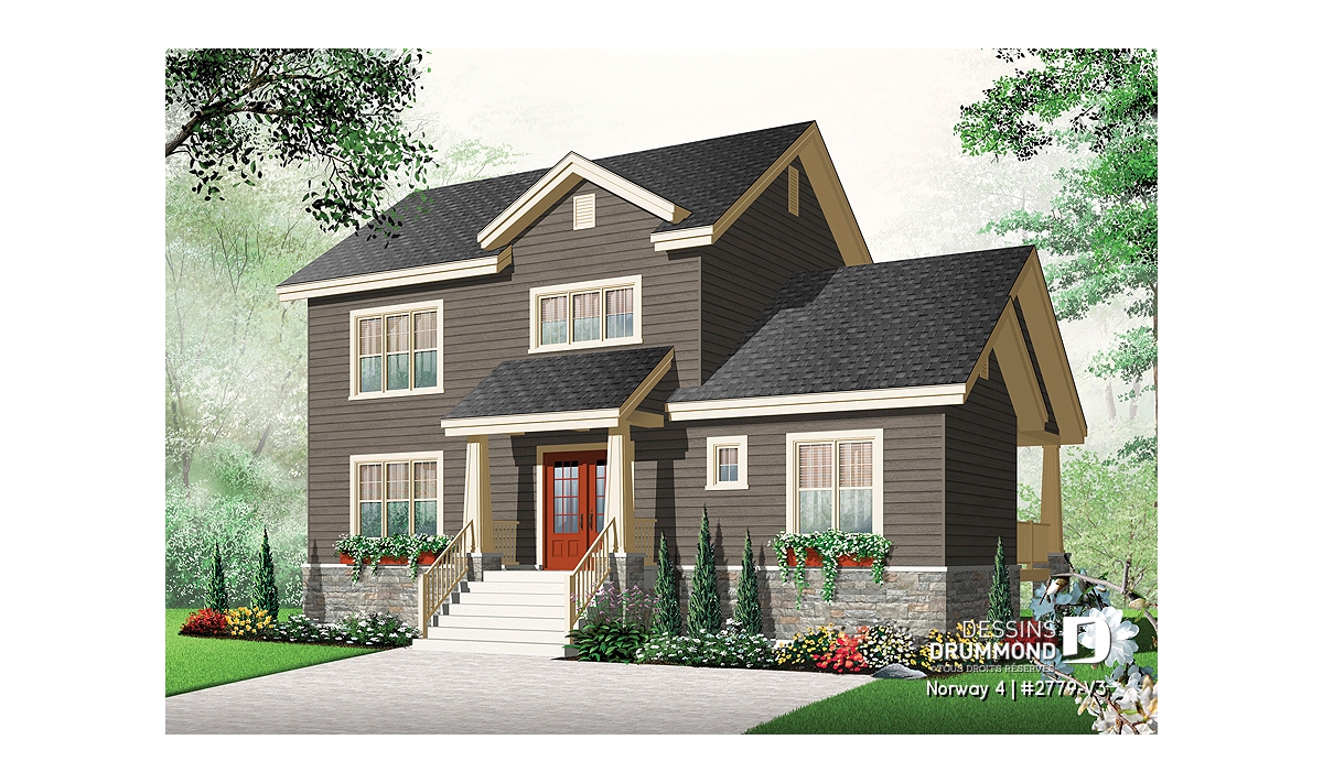 Quant au plan lui-même, DDi suggère ici une maison champêtre de style artisanal dont les principales caractéristiques sont: un plafond à 9’ sur tout le rez-de-chaussée avec fausses poutres, une terrasse couverte de 14’ x 13’ avec accès à la salle à manger et à l’espace bureau/buanderie et une cuisine avec îlot-lunch central de 8’ x 3’. Sans oublier, trois belles chambres à l'étage et une salle de bain lumineuse avec douche indépendante de 40’’x 54’’.
