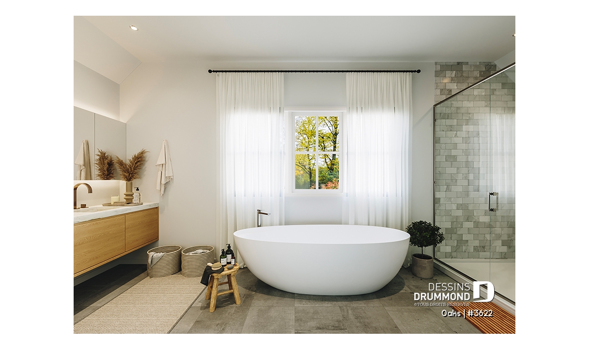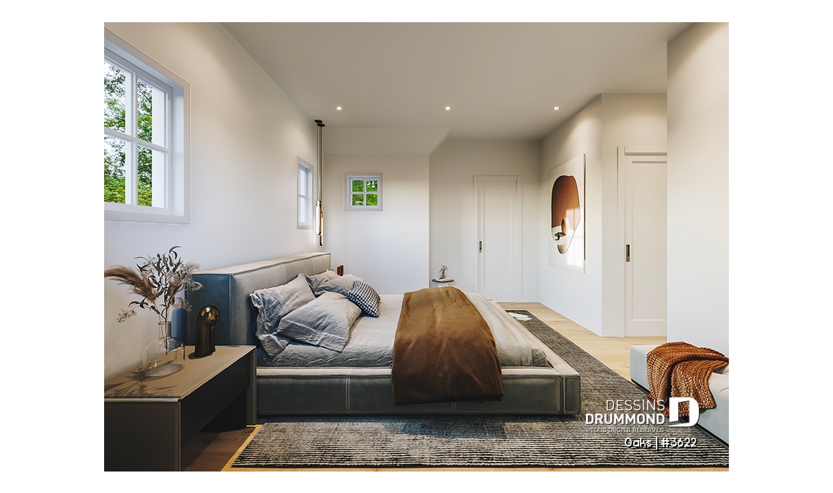 L’étage entier est réservé à une suite principale spacieuse, véritable refuge pour les parents. On y retrouve deux grands walk-in ainsi qu’une salle de bain privée, dotée d’une grande douche vitrée et d’un bain autoportant pour un moment de détente bien mérité. Un petit espace polyvalent situé face à la chambre principale peut servir de coin lecture ou de bureau intime, selon vos besoins.
