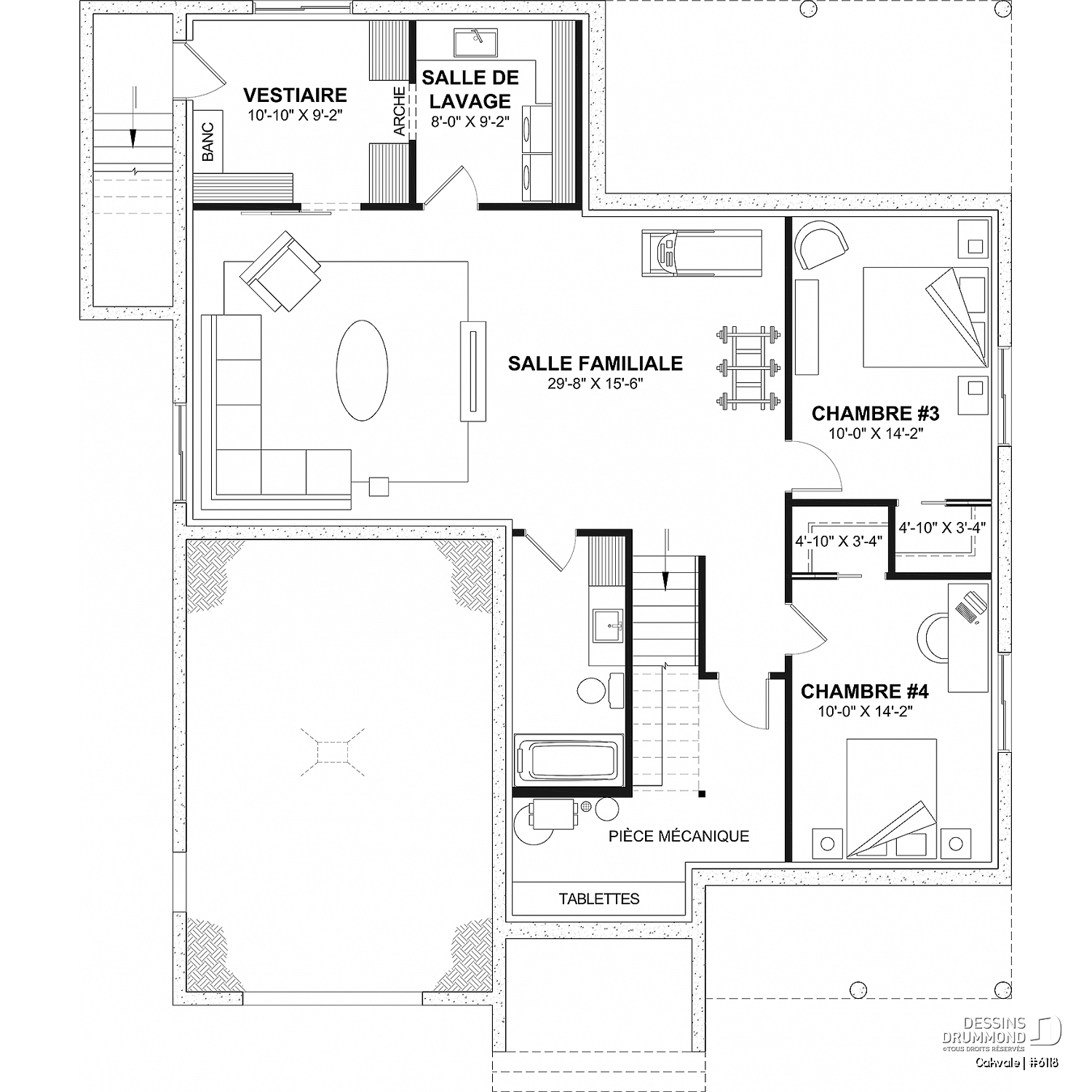 La fondation précisée à cette ligne est incluse dans le plan que vous recevrez, dans le prix du plan ainsi que dans l'estimation du coût de construction SAUF dans le cas d'un sous-sol aménagé. La finition d'un sous-sol aménagé n'est JAMAIS incluse dans notre estimation sauf si avis contraire précisé dans la description du plan et/ou dans la section élément distinctif, sur la page du plan. Un sous-sol aménageable est un sous-sol non-fini, à finir plus tard, selon vos besoins.