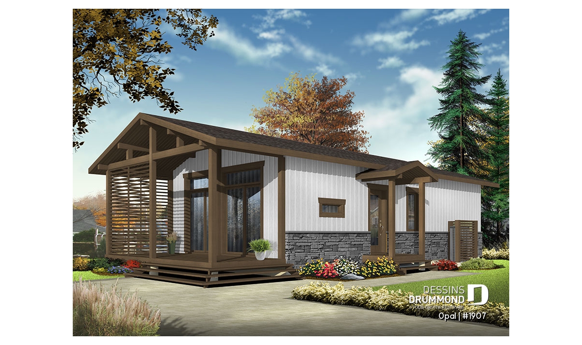Cette micro maison (ou micro chalet) d’approche minimaliste se veut la réponse à une forte demande de maisons et chalets rustiques, à coûts de construction raisonnable. Que ce soit comme résidence principale, ou comme chalet ou camps de pêche, le design efficace de la maison chalet « Opal » fera le bonheur des gens désireux d’avoir un chez-soi abordable, à la fois chaleureux et versatile.