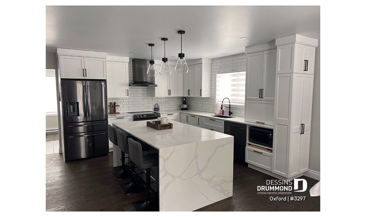 Cuisine avec îlot et garde-manger.