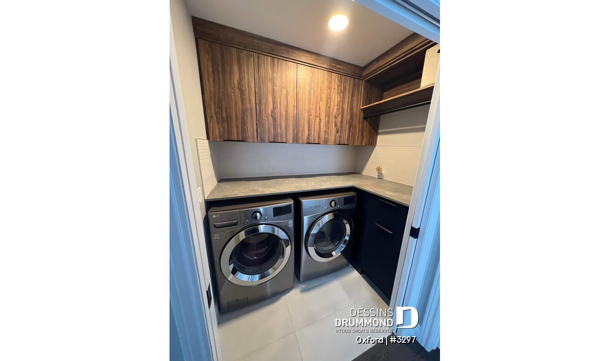 Une buanderie et une salle d'eau sont également localisés près de la cuisine.