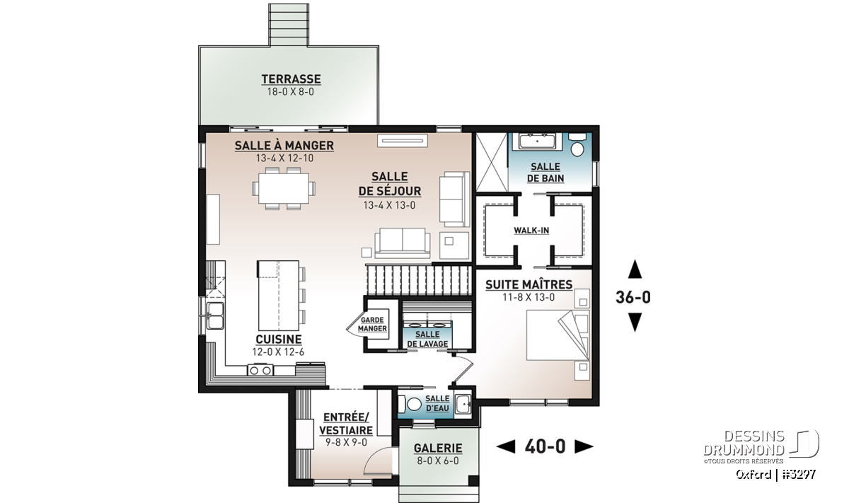 Aire ouverte, Salle de lavage au rez-de-chaussée, Comptoir-lunch, Garde-manger, Ilôt, Meuble(s) encastré(s), Suite des maîtres au rdc, Suite des maîtres à l'étage, Vestiaire, Walk-in double ch. maîtres, Bain et douche séparés