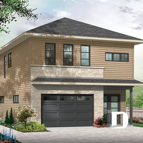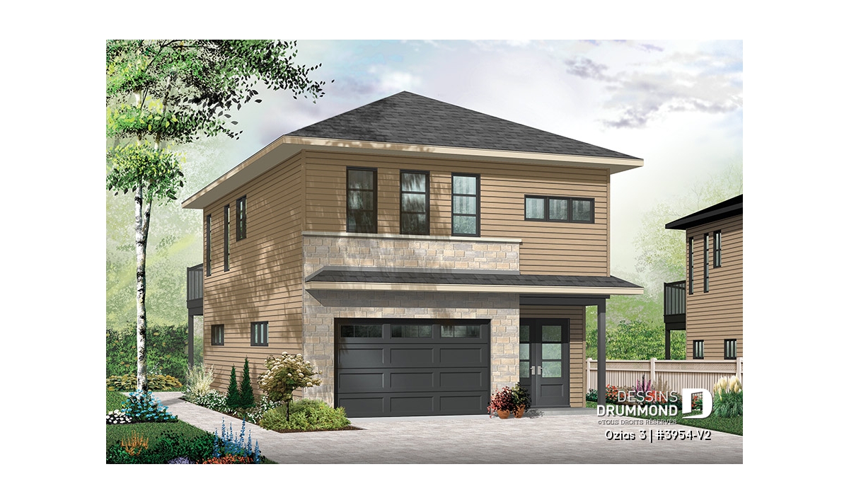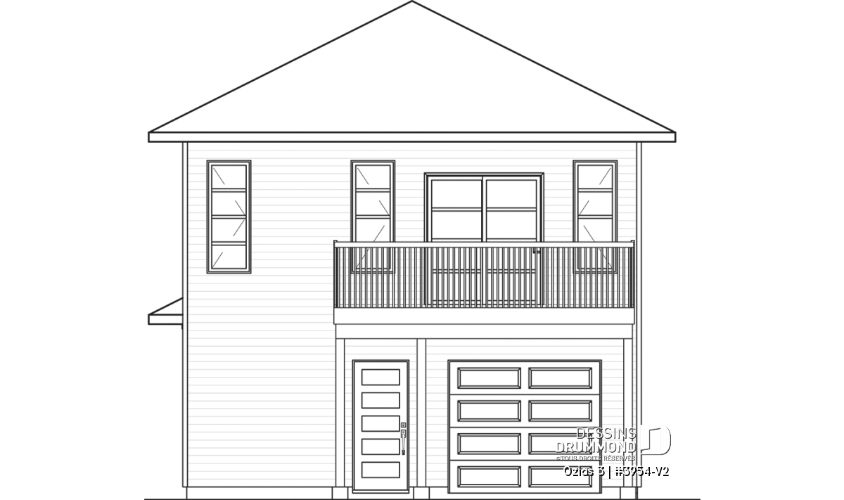 Afin d’apporter une variante contemporaine au plan 3954 d’origine, le concepteur a cru bon de revisiter celui-ci pour en proposer un modèle version que l’on pourrait fort bien voir s’ériger sur des lots étroits et parfois même urbains.