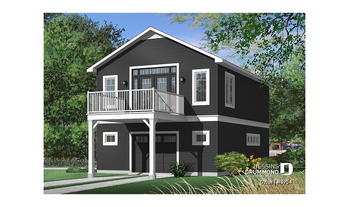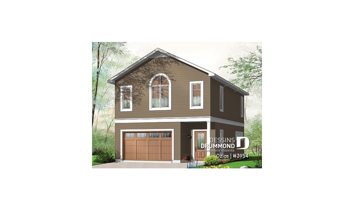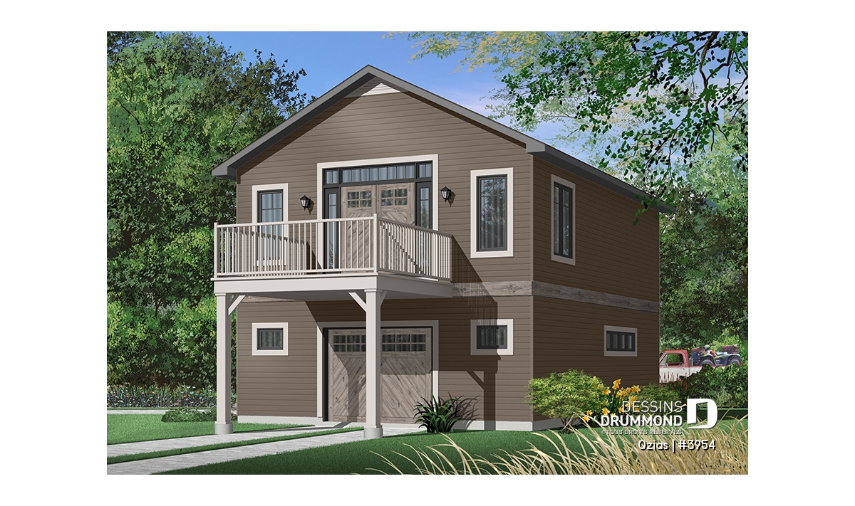 Rez-de-chaussée - Plan de garage avec logement à l'étage, espace pour une voiture & atelier au r-d-c, plafond cathédral, écono - Ozias