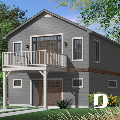 Plan de garage avec logement à l'étage, espace pour une voiture & atelier au r-d-c, plafond cathédral, écono