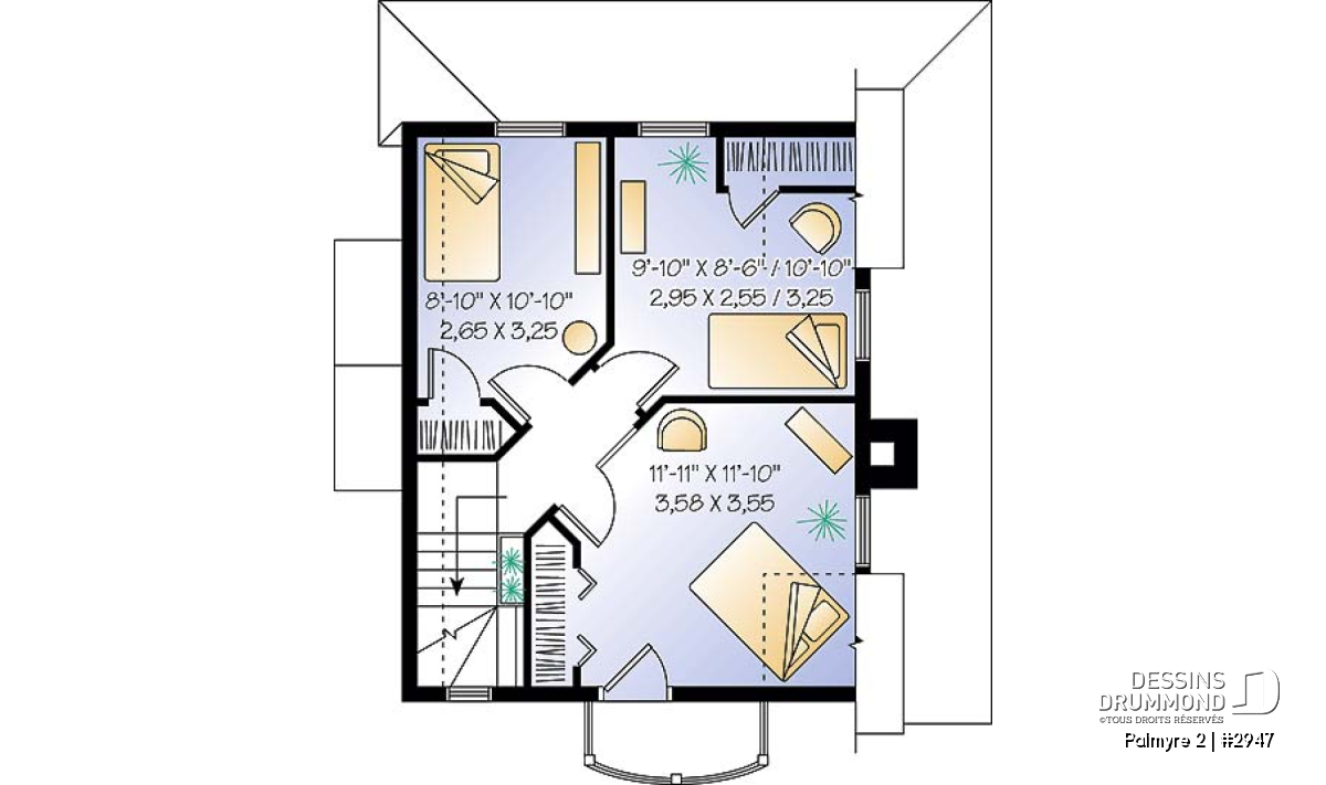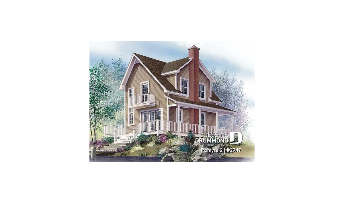Le résultat, un cottage champêtre au coût de construction attrayant pour lequel on suggère une galerie couverte sur au moins deux façades extérieures, une entrée principale en vestibule avec large garde-robe, un secteur activités entièrement ouvert et abondamment fenêtré au rez-de-chaussée, un escalier en coin réalisé à la façon des maisons d’antan et agrémenté d’une longue fenêtre et, finalement, un étage logeant trois chambres dont celle des maîtres avec accès à un balcon extérieur donnant sur l’arrière.