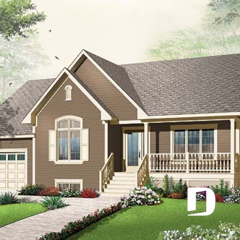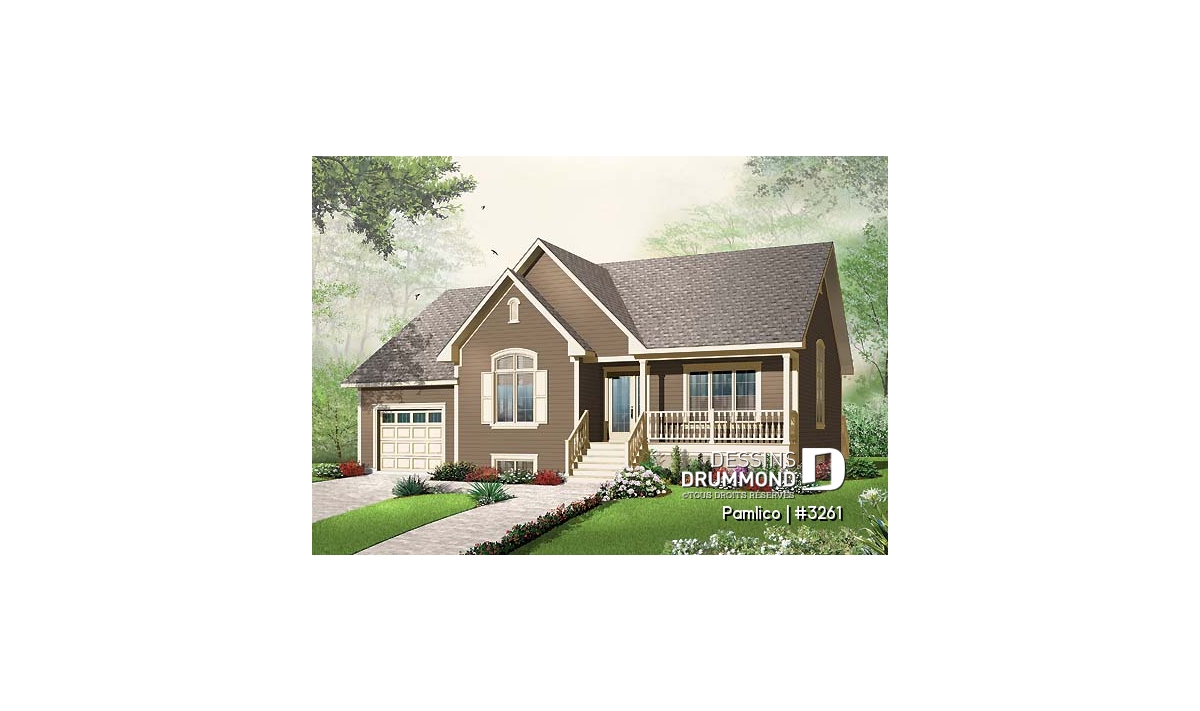 Vue avant - MODÈLE DE BASE - Plan de plain-pied économique, 2 chambres, garage avec rangement,, buanderie au rdc., garde-manger - Pamlico
