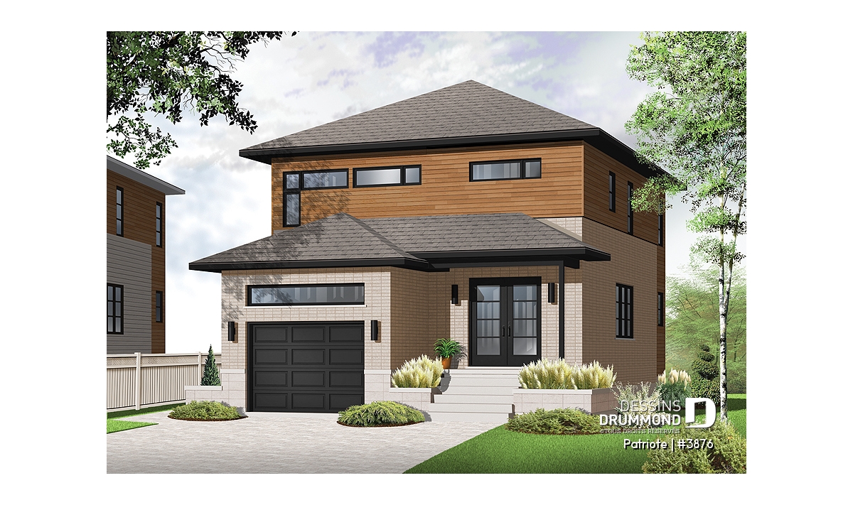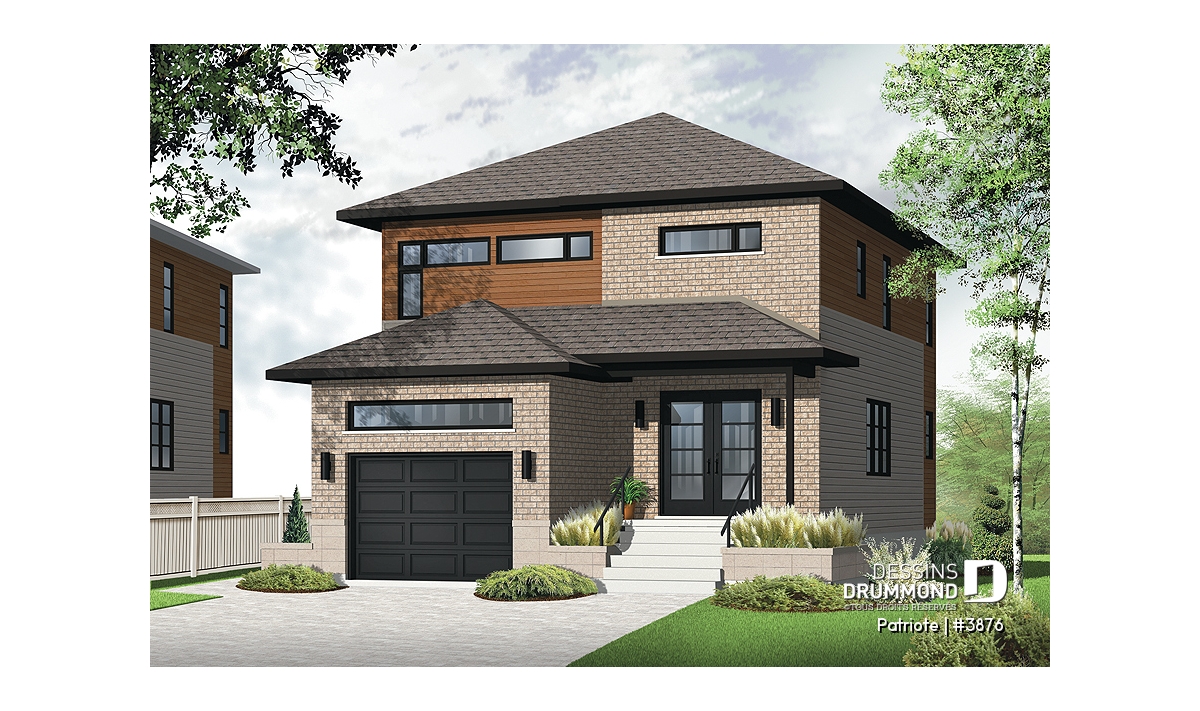 Réalisé dans la foulée de quelques autres modèles pensés pour des terrains étroits comme le 3877, aussi de style contemporain, ce cottage se veut une solution fort attrayante pour les futurs propriétaires à la recherche d’un plan aménagé selon les commodités d’aujourd’hui et aux prises avec un terrain passablement étroit.
