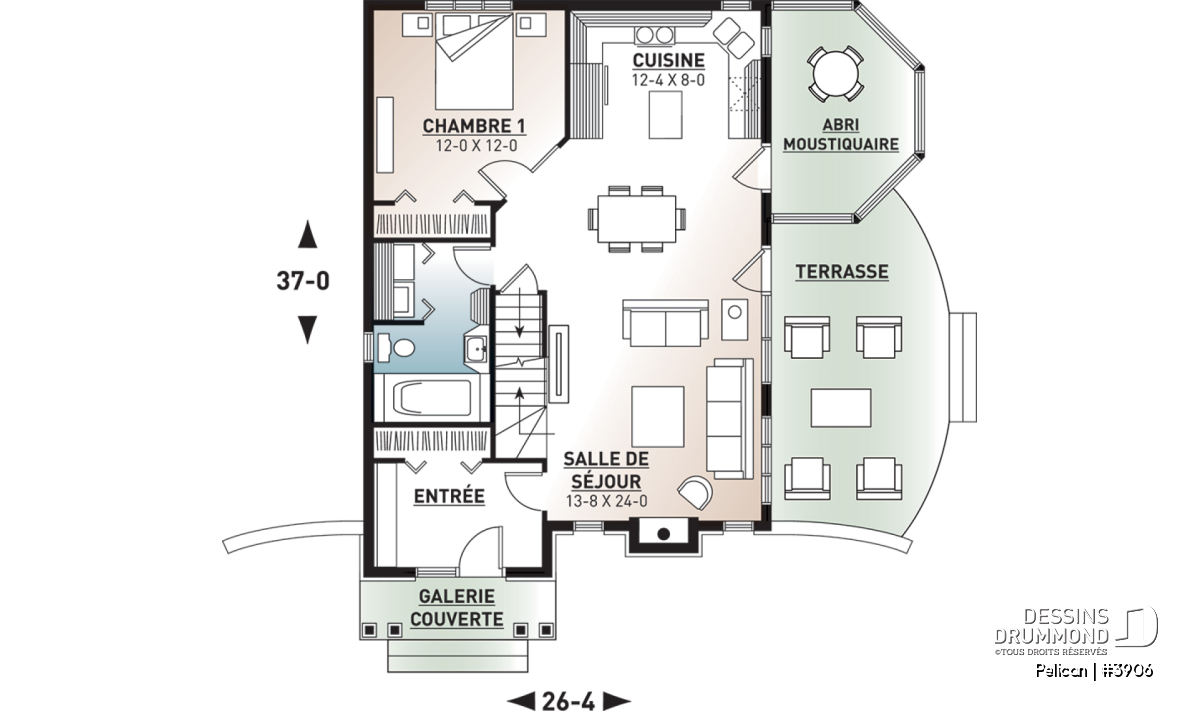 | Largeur | 26'4" | Profondeur | 37'0" |