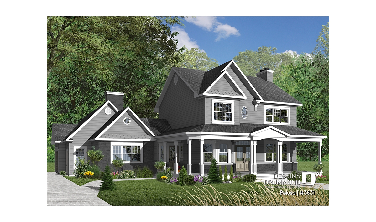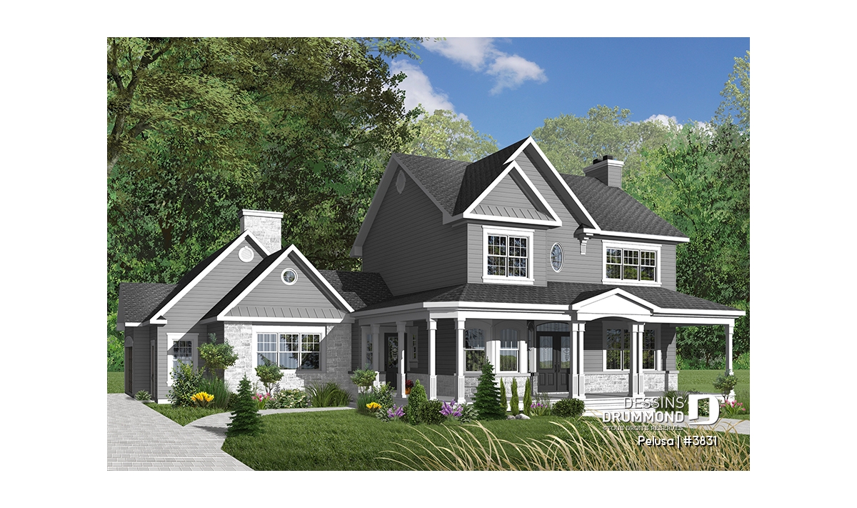 Plafond à 9pi au rez-de-chaussée, bureau à domicile, présence de deux foyers, espace boni accessible de la maison, grande galerie couverte à l'avant comme à l'arrière.