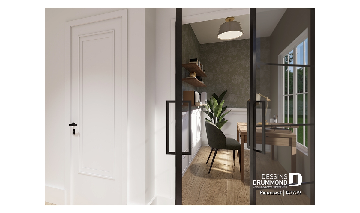 Le bureau est localisée près de l'entrée avant, sur la droite, et comporte une belle grande fenêtre.