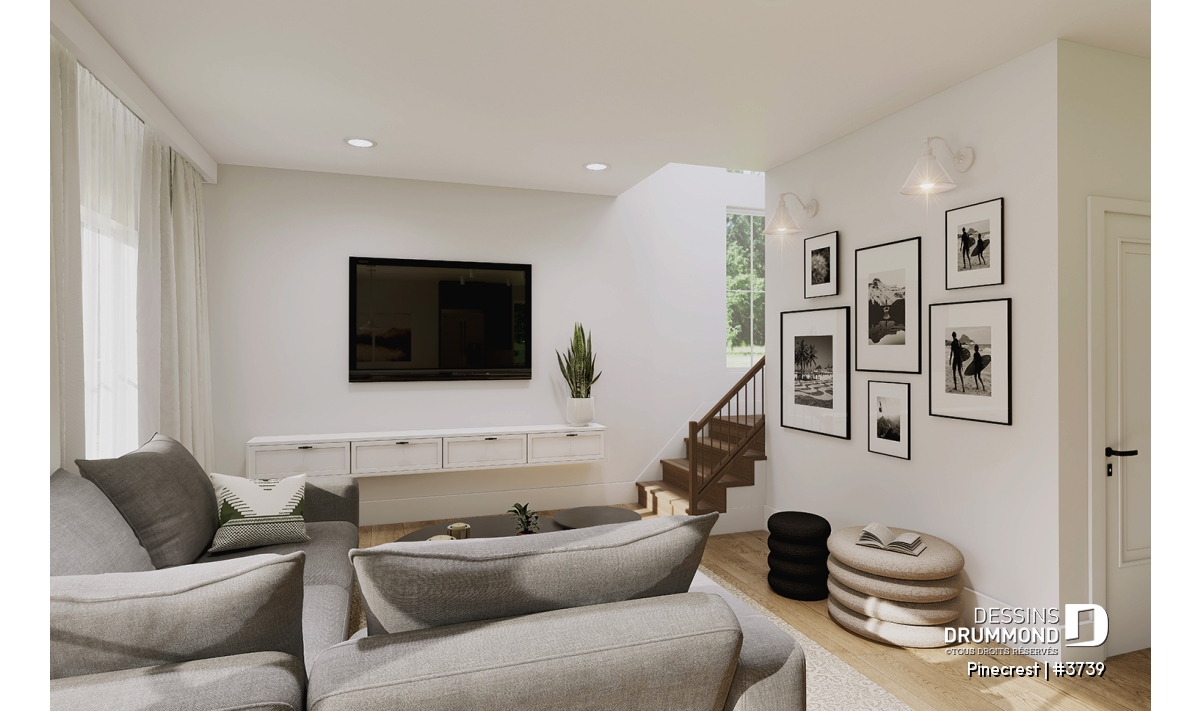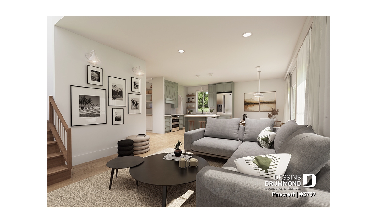 L'arrière de la maison est à aire ouverte et reçoit beaucoup de lumière naturelle.